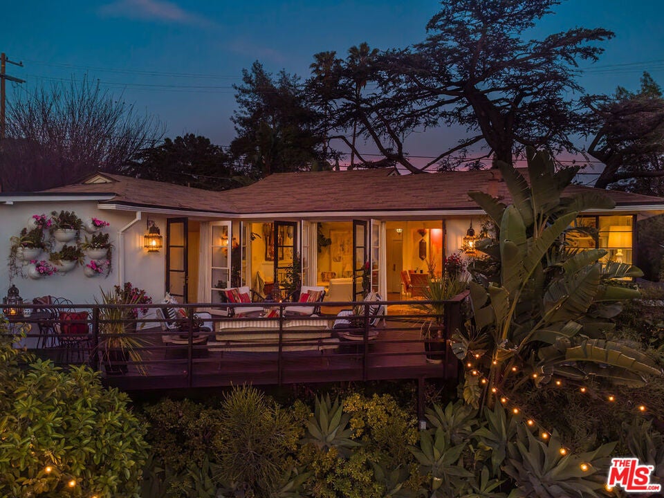 "For hope is always born at the same time as love."Miguel de Cervantes Saavedra, Don QuixoteAnd so it beginsan immediate connection, sparked the moment the gate gives way to a tunnel of yellow elders in bloom.Steps lead to the entrance landing, and just below, a front garden nookone of many gathering spots woven into this thoughtfully designed home.Inside, the foyer invites a pause, a breath, a moment to register that something is different here. A gut feeling, this one stands apart.Light pours in, revealing sweeping canyon views. A sensory pause feels necessary. So many extraordinary details in the designer home.Casement windows wrap the open kitchen, Moroccan pendants hover above the island, a vaulted wood-beamed ceiling, pristine oak floors stretch underfoot. French doorsfloor to ceilingopen wide to an expansive deck. The epitome of California living.The kitchen is a mastery in flow and design, form meets function, where a hint of whimsy meets high-style. The home chef practices alchemy with delectables, while entertaining guests with tales of travels far.Sleeping quarters, down the hall, sit just off the main living area, A full bath is flanked by two bedrooms, including a primary suite with a zellige-tiled shower and unlacquered brass fixtures. Doors open directly to the deckseamless inside to out.This home was designed for entertaining, with so many spaces throughout the property, for communion with friends. Framed by lush canyon vistas as the backdrop, serenaded by the soundscape of birds overhead, the sweet sounds of laughter within. The deck passages into the interior, as well as steps leading to another level of several more conversation spaces, crannies and hideaways, surrounded by verdant greenery. Tucked to the side, with a private space of its own, sits a fully functional, utterly charming, and potential income-making classic a Streamline Empress trailer. Much loved by out of town vacationers, it's perfect for a short term rental or guest space. Fully equipped with a kitchenette and bathroom, it also has an outdoor shower, and BBQ as well as its own seating and lounge areas. At day's end, with the last light fading through the French doors, there's a hushone can almost imagine a moment that echoes with the rhythm of old stories, like Scheherazade lulling to you to sleep with one of her tales. So many stories emanating from the walls of this well-loved home. So many more stories to be created.whispering one more before sleep. This is a home that holds stories well. And welcomes more.