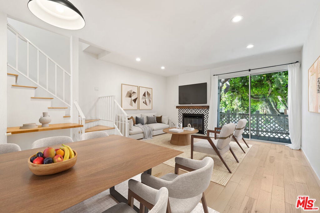 Now available for lease this beautifully updated townhome offers comfort, style, and great indoor-outdoor flow. The remodeled kitchen features an open layout for clear views into the living room and out to the greenery beyond. A peninsula adds extra counter space, while quartz countertops, butcher block shelves, and a brand-new refrigerator bring a modern, functional touch. Wood flooring runs throughout, and both bathrooms have been tastefully updated. The space is light, bright, and welcoming, with thoughtful details like a barn door accenting the laundry area. Enjoy three private balconies one off the living room and one for each bedroom. The tree-lined street along Falmouth adds a layer of privacy and a peaceful vibe when you're relaxing outside. This is a fantastic opportunity to lease a stylish and refreshed home in a great location ready for move-in.