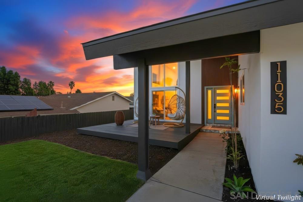From its striking architectural lines to the thoughtful craftsmanship found throughout, this home is a statement in modern design and livable luxury. Tucked away on a quiet cul-de-sac within the award-winning Poway Unified School District, this beautifully renovated home blends elevated finishes with exceptional comfort. Major upgrades, including a brand-new roof, new HVAC system, new electrical panel, and a newly installed Level 2 EV charger, provide both contemporary efficiency and lasting peace of mind. At the heart of the home, the reimagined kitchen showcases sleek European-style flat-panel cabinetry, elegant quartz countertops, and a convenient pot filler, all designed to complement the open flow into the living and dining areas. Wide-plank luxury vinyl flooring runs throughout, creating a cohesive and sophisticated feel while enhancing the home's natural light and spacious layout. Versatility is thoughtfully woven into the design with two primary suites, including a highly sought-after entry-level suite that offers ideal accommodations for guests or multi-generational living. Upstairs, the private primary retreat features a generous walk-in closet, a soft close/open barn door, and a spa-inspired bathroom complete with a bidet. Large multi-panel patio doors invite the outdoors in, opening to a private backyard that enjoys the rare benefit of no neighbors directly behind. A charming pergola creates the perfect setting for entertaining, dining al fresco, or simply relaxing in peaceful surroundings. Located just moments from scenic hiking trails and within walking distance of Rolling Hills Elementary, this exceptional residence offers a rare opportunity to experience luxury, privacy, and convenience in one of the area’s most desirable communities.