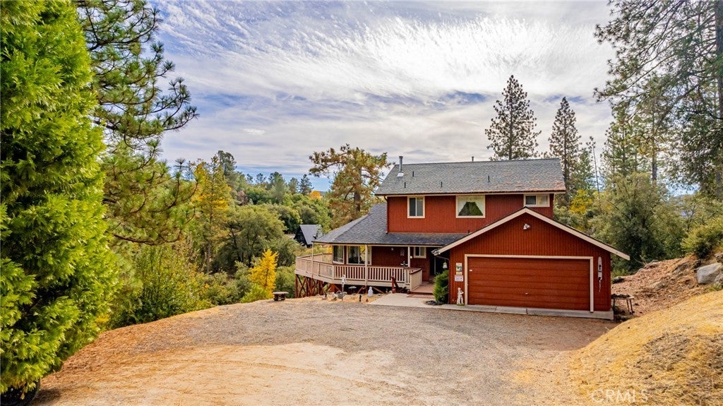 Discover your perfect getaway at this exquisite custom mountain retreat nestled on 10 serene acres in Oakhurst. This one owner two-story home features 3 spacious bedrooms and 3 baths, designed for both comfort and style. Step down Living room is the focal point with lots of windows, gorgeous rock hearth and a feeling your in a tree house. The highlight of the property is the expansive deck, perfect for soaking in breathtaking mountain views and enjoying the tranquility of nature. Step into the heart of the home, where you'll find an inviting open layout that seamlessly connects the living spaces. Oversized laundry room has extra area perfect for office space or whatever your needs. The bonus area downstairs offers additional privacy with its own entrance, complete with a cozy bedroom, bath, and sitting room ideal for guests or as a private office. Wander through the lush surroundings to find a charming seasonal creek, adding to the serene ambiance. An observation deck set amongst the trees invites you to unwind and connect with the natural beauty that surrounds you. Whether you're looking for a year-round residence or a seasonal escape, this remarkable property is just minutes from the stunning landscapes of Bass Lake and the entrance to Yosemite National Park. This has only been used by one owner as a second home . Don't miss your chance to own a piece of paradise!