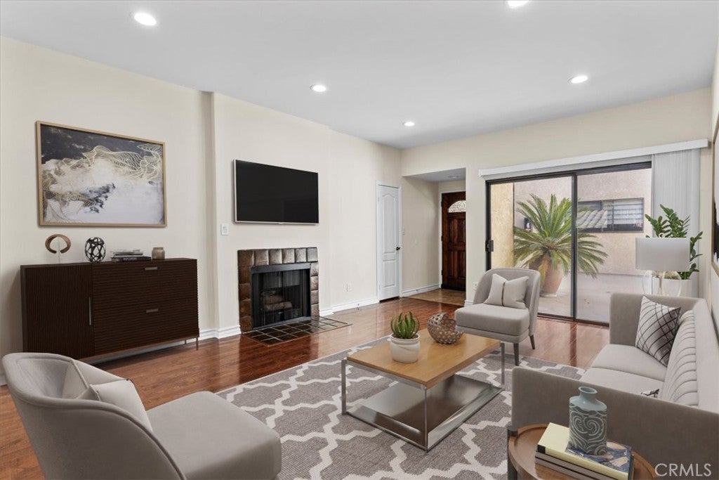 Introducing a delightful 2-bedroom, 2-bathroom residence nestled in the highly sought-after Riverside Villas of Sherman Oaks. Situated on the serene first floor of a secure, 10-unit building, this beautifully updated home boasts an inviting, open-concept living area featuring a cozy fireplace. The seamless flow leads into the dining area and a modern kitchen, complete with a stylish breakfast bar. The spacious primary suite offers a beautifully remodeled en-suite bathroom, while the second bedroom and adjacent bathroom provide ample comfort. With new flooring throughout, gated tandem parking, and prime location just moments from the Sherman Oaks Galleria, Trader Joe’s, and Ventura Blvd, this exceptional property is a rare find and won’t last long!