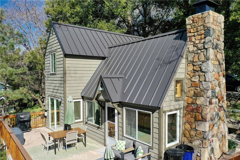 Super Private “Off-The-Beaten-Path” Location yet simply minutes to Cedar Glen Shopping & Restaurant Commercial District find this Unique Emotional Vintage Home that is nestled hillside on an approximate 24,890 sqft gentle Down Sloping Lot embracing glorious Sunrises. This 1,176 sqft Private Gem has been Meticulously Maintained with many upgrades over the 30 Years of Pride of Ownership inclusive of a most recent Brand-New Standing Seam Insulated Metal Roof and less recent Dual Pane Windows throughout. Main Level Features: Storybook Character Custom Classic Original Stone Fireplace reminiscent of a Quaint European Hunting Lodge with Vaulted Wood Beamed Ceilings, Knotty Pine Walls that Glow the Color of Honey, Quality Laminate Wood Flooring, upgraded Barn Door Slider Access opens to the Over-sized Outdoor Entertaining Deck to take in the Tranquility of the Mountain Ridgeline Views. Fully Remodeled Kitchen boasting Subway Tile Backsplash accented with Butcher Block Counters, Exposed Apron Sink and Newer Stainless Appliances, plus cozy Main Bath with Enticing Claw Foot Soaking Tub. Upper-Level Features: Two Charming Jack and Jill Style Bedrooms with Ceiling Fans and more than ample head clearance with shared access to the Toilet and Sink in between. Lowest Exterior Level Features: Exterior Access Only to the Permitted 380 sqft Studio/Workshop/Game Room/Extra Storage with Wet Sink for all the Mountain Necessities and Keepsakes!