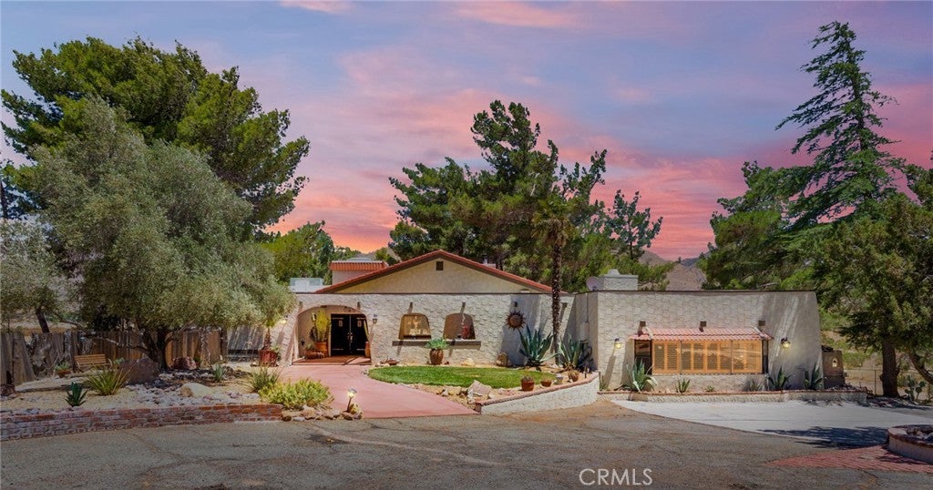Truly One-of-a-Kind Spanish-Style Estate on Over 4 Acres with Guest Suite & Astounding Views! Experience rustic elegance and exceptional versatility in this beautifully upgraded 4 bedrooms, 3 baths custom home with nearly 3,000 sq ft of living space on over 4 acres. This Spanish-style estate is perfectly suited for multi-generational living, entertaining, or those seeking a self-sustaining lifestyle with comfort and charm throughout. The showstopper here is the expansive family room with its cathedral beamed ceiling, massive picture windows, wood burning stove with brick accent built in seating as well as a wet bar area. The remodeled kitchen features rough-edge granite countertops, a hammered copper farmhouse sink, stacked stone backsplash, Bosch double oven, and under cabinet lighting. The formal dining area sits fine beneath the loft area and is framed with beautiful carved wood. With details such as the Knotty pine solid wood doors, multiple skylights, plantation shutters, and French doors throughout, this property exudes timeless warmth and style. The expansive game room offers its own HVAC system and a built-in safe. A separate mother-in-law suite provides privacy for guests or extended family. The laundry room includes a utility sink, built-in drying racks, and a beautiful custom wood and glass door. Another unique room to note is the cigar room just off of one of the bedrooms. Outside, enjoy a grapevine-covered pergola, a deck with outdoor kitchen, sparkling 9-ft deep pool, and so many secret garden sitting areas. Additional features include a detached flex space complete with electricity perfect for a studio or a home office, fenced RV area, shed, dog kennel, and electric security gate offering the utmost privacy. Bonus upgrades: 2 septic systems, home is on its own well and comes with two separate 2500 gallon water tanks with fire hoses. Also included is a rustic wine fridge and finished garage. All plumbing and wiring in place for a separate Generac generator.