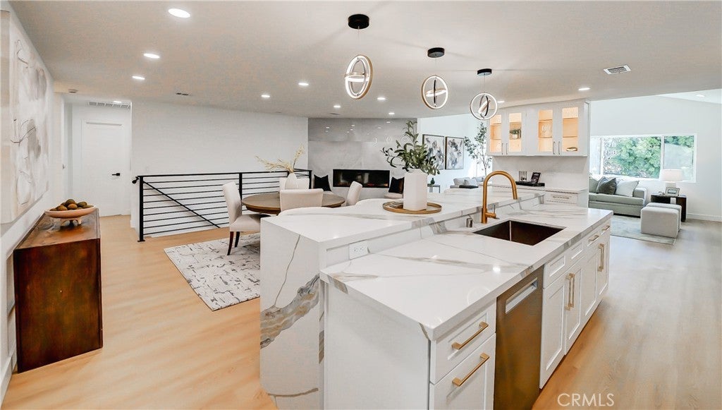 Welcome to 26796 Calle Real, a private masterpiece of modern elegance in the heart of Capistrano Beach, CA. This meticulously remodeled home perfectly blends coastal charm and contemporary luxury. With five bedrooms and five bathrooms spread over 3,500 square feet, this elegant home is designed for those who appreciate a sophisticated coastal lifestyle in a quiet, charming setting. As you enter, discover a newly landscaped private patio area perfect for relaxing, then step inside the home to find a large, open, versatile layout connecting the living room to the dining area. The dream kitchen, equipped with a chef's butler's pantry, is a culinary delight, featuring premium Thor appliances, including a 48" six-burner double oven range and a Bosch dishwasher and refrigerator, Signature fixtures, ample storage, and a large island that serves as a breakfast bar. Enjoy the stylish wine bar with custom-lighted cabinets, a wine refrigerator, and a cozy fireplace that adds elegance and warmth. The upper level boasts three spacious bedrooms, each with a bathroom, creating a private retreat for relaxation. The lower level features a large flexible living area with two additional bedrooms, two full bathrooms, a designer fireplace, an office, and a substantial family room. The choice is yours, whether you imagine a game or family room area. Expansive custom pocket doors open to a large backyard, making it an entertainer's dream for seamless indoor-outdoor living. An attached two-car garage and all-new dual-paned windows enhance the home's modern appeal. The home's location offers easy access to local stores, restaurants, and parks. Enjoy a short bike ride or walk to all that Dana Point provides, including the revitalized Dana Point Harbor. Discover this true treasure in a quiet, charming neighborhood where every detail has been thoughtfully curated for a sophisticated coastal lifestyle.