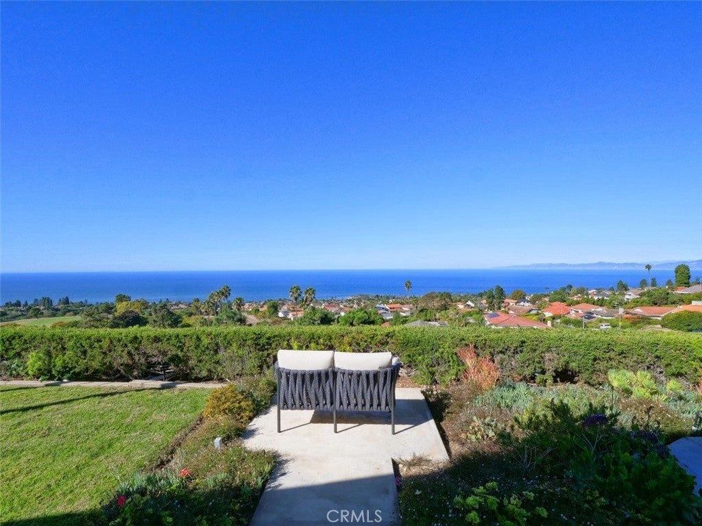 This designer-perfect ONE STORY home offers an UNOBSTRUCTED, BREATHTAKING OCEAN VIEW STRETCHING FROM CATALINA ISLAND ALL THE WAY TO MALIBU. You will also enjoy incredible sunsets from the privacy of the home and the lovely backyard. Entire property was renovated in 2021, this turnkey residence boasts a new kitchen, bathrooms, wood floor, recess lightings and much more. As you enter through the gated entrance, a tranquil water fountain welcomes you. Inside, a formal entry leads to the living room with a beamed cathedral ceiling and a cozy fireplace. It also opens to the formal dining room. The light-filled, open-concept layout family room, where cathedral ceilings and large door/windows frame panoramic ocean views. Beautiful open kitchen with expansive quartz countertops, top-of-the-line Wolf appliances, and a good size of the pantry. Retreat to the primary suite and awaken to the sight of the sea, with built-in closets and a sliding door leading to the backyard. The 3 other bedrooms are of good size with ample closet space and share a hallway bathroom. Outside, an oasis awaits with 2 grassy areas, 2 open patios and a swing set, all surrounded by beautiful landscape. Additional highlights include ample built-in storage in the garage and access to the award-winning Palos Verdes schools.