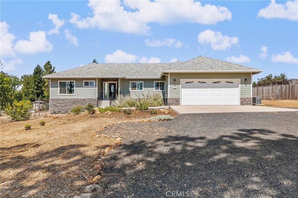 Stunning Modern Home! Welcome to your dream home! Built in 2022, this gorgeous 3-bedroom, 2.5-bath residence also features a bonus office room. Situated on a spacious and completely usable one-acre lot, this property offers both tranquility and convenience, just a short drive from Chico. Inside, you'll be greeted by an open layout filled with natural light from oversized Milgard windows. The gourmet kitchen is a chef's dream, featuring granite countertops, a subway tile backsplash, stainless steel appliances, and beautiful custom wooden cabinets complete with an abundance of soft close drawers and so much extra storage. There's also a convenient eat-in bar. The primary suite is a true retreat, complete with a private slider to the back patio, a luxurious bathroom with double sinks, a jetted tub, a walk-in shower, and a huge walk-in closet. The bonus room off the suite is perfect for an office or studio. Outdoor living is a delight with a massive covered patio, ready for a hot tub with a 50-amp connection, ensuring plenty of privacy. Additional quality features include copper plumbing, an emergency Generac generator (22 kW), an insulated garage with a 50-amp vehicle charging station, and a whole-house fan, plus on-demand water heater, only to name a few. Plus, the home is equipped with fiber optic wiring and a Google Nest security system. Back yard is completely fenced and is planted with Roses and a variety of fruit trees and ornamentals. There's room for gardeners galore and your backyard chickens perhaps. This lightly lived in home is ready to welcome its new family. Don’t miss out on this gem!