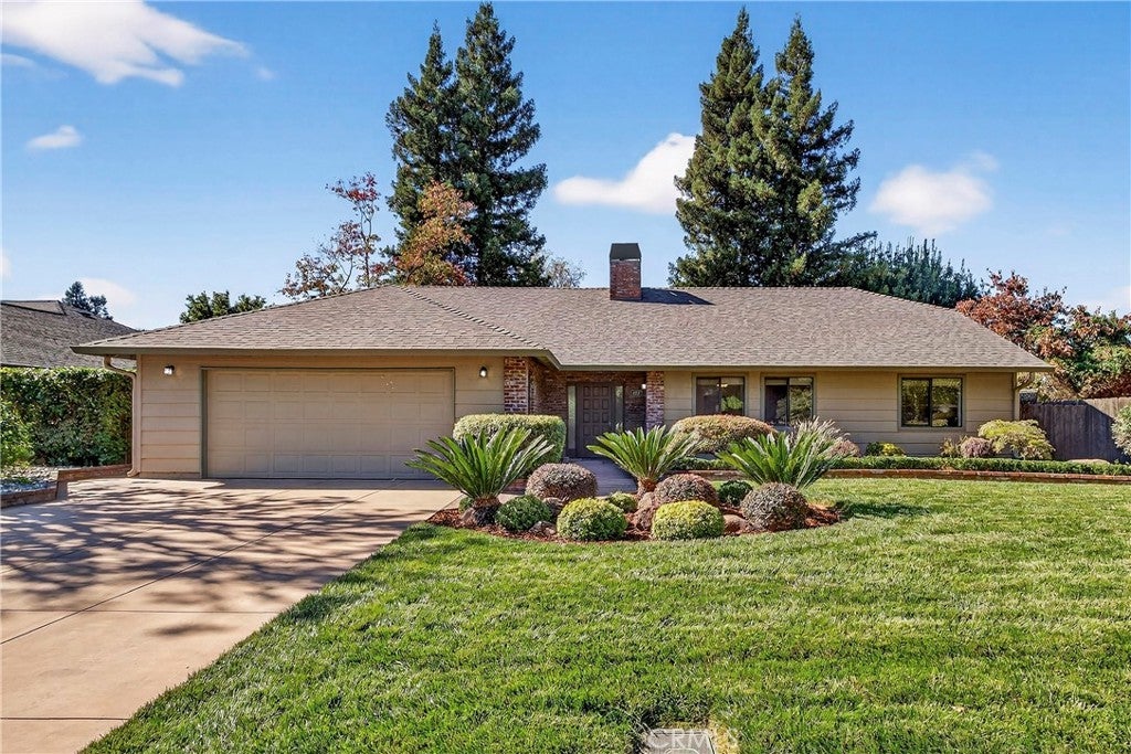 Beautifully cared for home in a desirable cul-de-sac within the peaceful Walnut Woods Subdivision. Immediately you notice the beautifully landscaped front yard and space for parking. As you enter the home you find that the family room has a wood fireplace and a stunning arched and beamed wooded ceiling. The skylights, French doors and large windows provide ample natural light. From both the Family room and dining area you look out to a gorgeous and maturely landscaped backyard haven. Also in the family room you will find a built-in storage bookshelf, with a bench seat. The kitchen has some updated touches with newer counter tops, a gas range, and an eating bar. The primary bedroom suite also has a arched ceiling, generous walk-in closet and access to the backyard. Sitting on your back patio is pure joy! From the thick, dark green lawn, to the beautiful bushes and amazing mature trees, it is incredibly peaceful and also a fantastic place for gatherings and fun. Love to garden? There is plenty of space and the awesome west Chico soil. This home has custom built characteristics, is spacious yet feels tremendously cozy. The HVAC system was replaced in April of this year, there is a septic and pest clearance and the brand new roof and fresh interior paint throughout, create the perfect shell and canvas to make this home your own. Make an appointment with your favorite Realtor today and come see the possibilities.