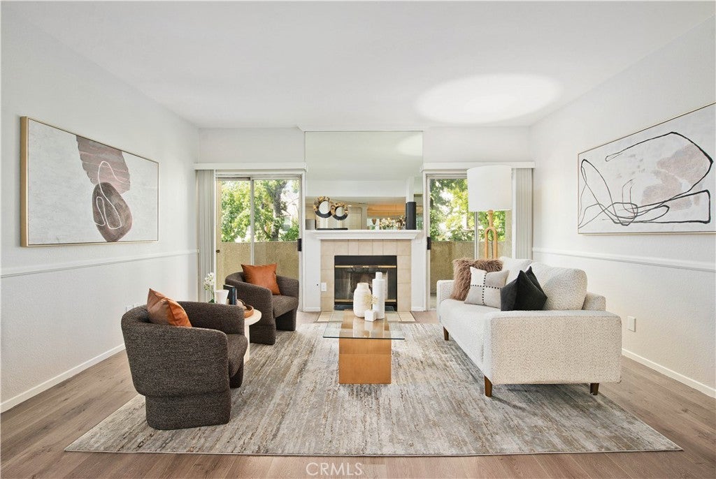 Look no further! This stunning residence in Chandler Park Village is ideally situated on a peaceful cul-de-sac street within the community’s most sought-after building. Bathed in natural light, this desirable corner unit offers beautiful views of mature trees and lush landscaping. Step inside to find spacious, open-concept living areas that include a formal dining space and an expansive living room anchored around its cozy fireplace, with direct access to a serene private balcony. The cook's kitchen features stainless steel appliances and a casual dining area — perfect for everyday living and entertaining. The well-designed layout includes two bedrooms located on opposite sides of the home, providing privacy and comfort. The expansive primary suite boasts a picturesque bay window, dressing area, enormous walk-in closet plus an additional wardrobe closet, and a spa-inspired bath with a makeup vanity and an oval soaking tub. Additional highlights include a full-size in-unit laundry including W&D, recently updated vinyl flooring, new carpet, new paint, designer updates, gated tandem parking, and private storage space. Enjoy the resort-style community amenities such as multiple pools and spas, a BBQ area, and fitness center. Located just moments from premier dining, shopping, entertainment, and major freeways — this is a rare opportunity to call Chandler Park Village home!