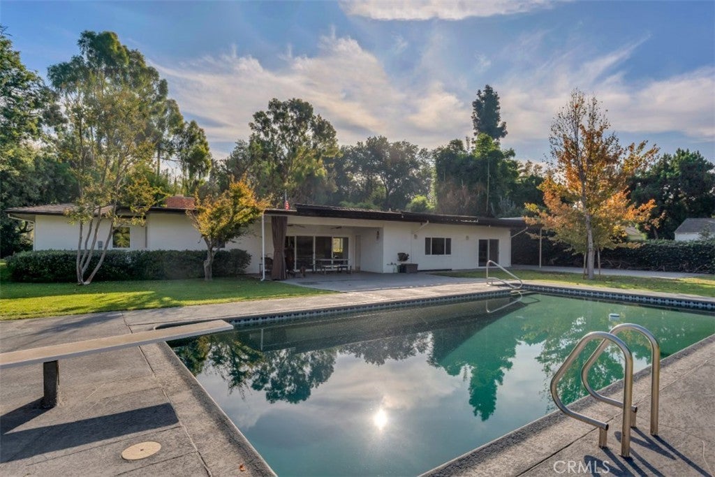 Behind private gates & nestled on nearly one acre of lush, tree-filled grounds, this distinguished 4-bedroom, 2.5-bath Northridge residence embodies the warmth, character, & tranquility of a true California estate. A deep setback from the street & long gated drive create a grand approach, with generous parking that includes a 2-car attached garage, 4-car carport, & expansive RV access. At the heart of the home, a serene front courtyard framed by vibrant landscaping welcomes you inside to nearly 3,200 sq ft of light-filled living space. Step down to the impressive main living area featuring dramatic open-beam ceilings, a statement fireplace with raised hearth, & custom built-ins, while walls of glass open to the covered patio & pool, seamlessly connecting indoor & outdoor living. A large picture window on the opposite wall showcases the front courtyard, flooding the space with natural light & creating a beautiful sense of symmetry. The adjoining family room & formal dining area with additional backyard access, & the spacious kitchen—with built-in cooktop, double ovens, & cozy breakfast nook—offer perfect flow for entertaining & everyday living. The home’s thoughtful layout continues with a powder bath for guests, a large laundry room with wall-to-wall built-in storage, & direct garage access. All bedrooms are found in the north wing of the home, including a peaceful primary suite with fireplace, ample closet space, & an ensuite bath featuring wraparound dual-sink vanity, oversized shower, & a second walk-in closet that impresses in size. Three additional bedrooms share a hall bath with separate tub & shower, each enhanced with ceiling fans & natural light. Outside, the backyard unfolds like a private park, with a covered patio featuring ceiling fans & retractable awnings, a sparkling pool with diving board, vast lawn, & a canopy of mature trees offering shade & serenity. A powerful 22 kW backup generator adds peace of mind & convenience, ensuring uninterrupted comfort year-round. The property is zoned LARA, suggesting potential for an ADU, guesthouse, or future expansion (buyers to verify). Ideally located near the Northridge Fashion Center, Porter Ranch Vineyards Shopping Center, popular dining destinations, & beautiful local parks, the home provides easy access to the 101 & 118 Freeways as well as connecting major thoroughfares, & falls within the boundaries of highly rated Napa Street Elementary & Sutter Middle School.