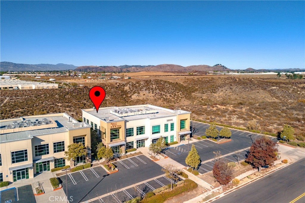 Step into an exceptional office condo designed to impress! This ground-floor suite boasts two private entrances, 3 private offices (all with breathtaking views of the bluffs near French Valley Airport), a kitchenette, 2 private restroom, 2 storage closets, a spacious meeting/boardroom, a welcoming reception area, and rear patio access—ideal for a professional workspace. Set within a professionally managed office park, this unit is part of a pristine multi-tenant building with excellent freeway access to the 215 freeway, 15 freeway, Hwy-79 and is just minutes from Murrieta Hot Springs Road. Perfect for owner-users with SBA financing (10% down) or as a high-performing investment with projected rents yielding a 5.25%-5.5% cap rate. Don't miss this incredible opportunity—call our listing agent to schedule your showing today! OA dues include: Landscape & Landscape Irrigation, Exterior Window Washing, Pest Service, Trash & the repair / replacement of all centrally metered utilities and mechanical / electrical equipment serving the Common Property