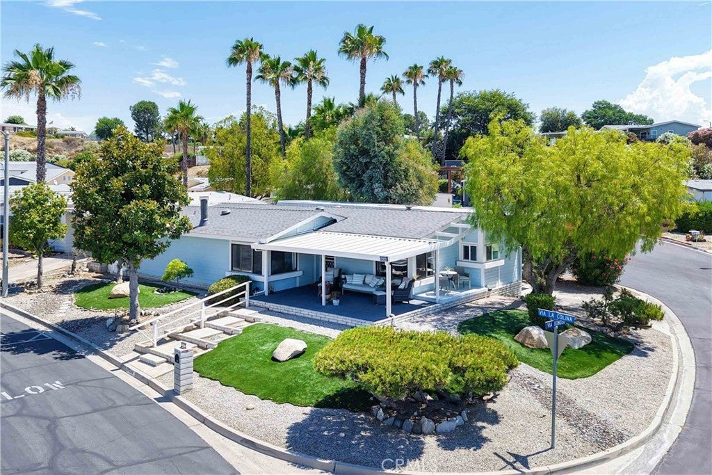 Views! Views! Views! You OWN the Land – No Space Rent and 433 certified so it is financeable! Welcome to one of the most desirable homes in this vibrant 55+ community! This rare triple-wide sits on an elevated corner lot at the end of a quiet court, offering privacy with no direct neighbors and sweeping views from nearly every room. Enjoy the peace and beauty of sunrises from the front porch and breathtaking sunsets from your living room, kitchen, and dining area. This home is thoughtfully positioned so you're never looking into a neighbor’s window or rooftop—just open sky and nature. Features You'll Love, just to name a few: Spacious open floor plan filled with natural light, RV parking with sewer dump, low-maintenance landscaping with mature trees, AstroTurf, and a cozy pergola with solar lighting, two sheds, extra parking, and room to build a garage while keeping RV space. This home features Stunning Upgrades Throughout including a brand new roof, new luxury flooring with black floor register covers, all-new kitchen with shaker cabinets, quartz counters, subway tile backsplash, deep stainless sink, touchless faucet, pull-out pantry shelves, lazy Susan, and stainless steel appliances, new bathrooms with updated vanities, toilets, mirrors, and fixtures, keyless entry locks, matte black hardware, new porch lights, doorbell, and solar house numbers. This is more than just a home—it’s a lifestyle! Bring your golf cart and enjoy the fun, active community with a variety of amenities and activities. Whether you're relaxing on the porch, enjoying the views, or entertaining friends under the pergola—this home has it all. Don’t miss this rare opportunity to own a triple-wide with unmatched views, land ownership, and room to grow. The possibilities are endless!