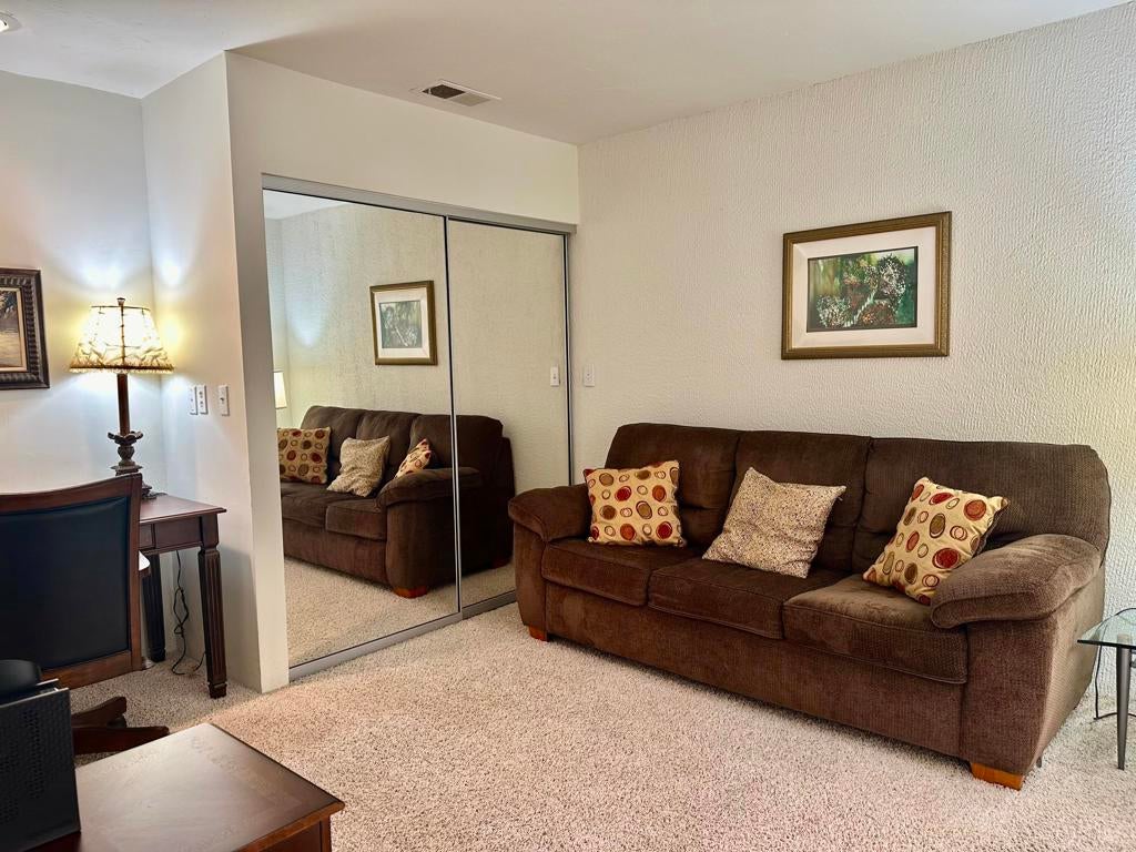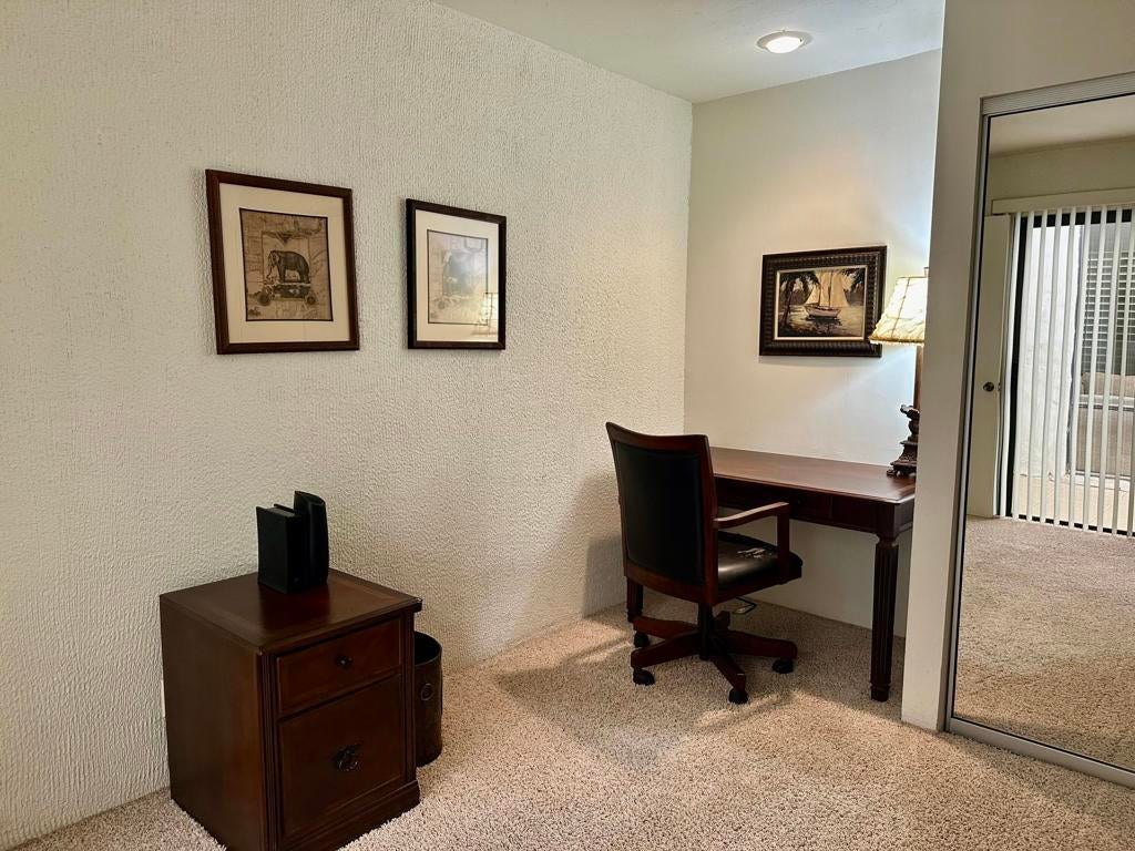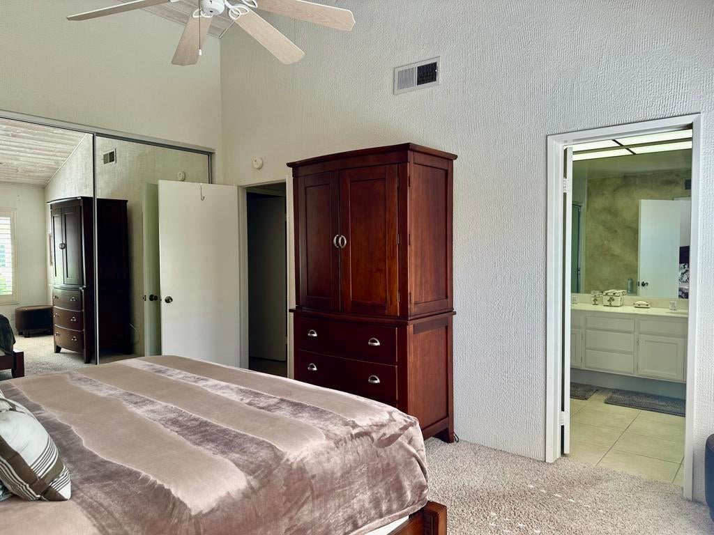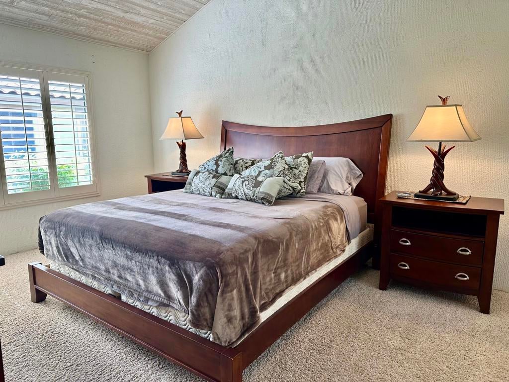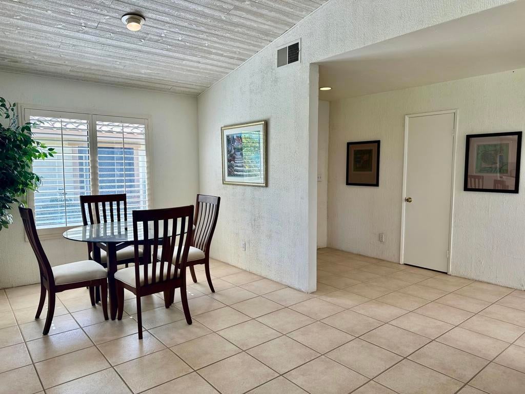 Welcome to this lovely 30 Plan condo featuring 2 bedrooms--one with a king bed and the other with twins--plus a den with an office desk and convertible full sleeper sofa, perfect for guests or for working. The kitchen includes a charming breakfast nook, ideal for casual meals.Enjoy the convenience of an attached garage and a north-facing patio that overlooks the spacious double-wide fairway, offering beautiful views. The interior boasts newer tiled flooring in the common areas, complemented by cozy carpeting in the bedrooms.This condo is a wonderful blend of comfort and style--come see it for yourself!