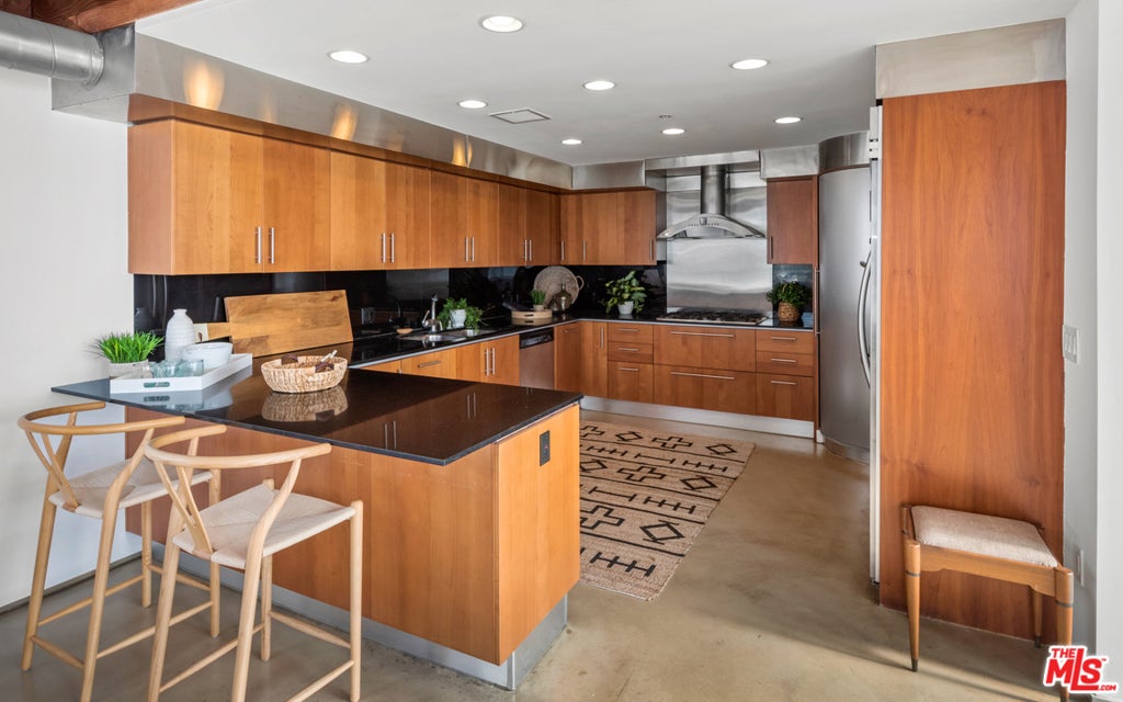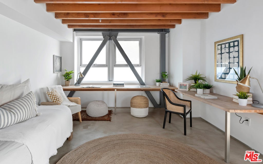 Beyond extraordinary live/work opportunity located in the landmark Bay Cities Laundry on Abbot Kinney Boulevard. The original 1923 building, designed by renowned architect Mark Mack, underwent a complete restoration and re-adaption into seven incredible lofts in 2004 with superb architecture, layout, and an enviable location. Unit #A is the prime unit as it comprises the whole side of the complex fronting Abbot Kinney, allowing for superior natural light and terrific exposure.The lower level features bright & open living in a studio-style layout accented by 2-story heights and three walls of glass plus a gallery entry, an office/bedroom, full bath, laundry, fully appointed kitchen, and a private patio, great for alfresco dining. Above are a loft and main bedroom, each with high trussed ceilings and adjoining baths. Other highlights include central heat and air, wired for alarm, and polished concrete and bamboo floors. There is a private two-car garage.This property is zoned for both commercial and residential use, optimum for a primary residence, production company, tech start-up, artist, design professional, +++. And in a premier location, surrounded by trendy shopping and dining, six blocks to Venice beach.