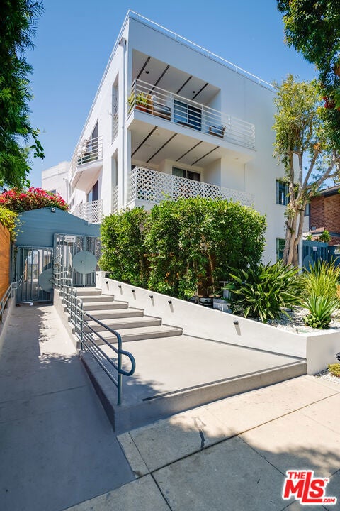 Located just a half block off Montana Avenue, this completely remodeled, top floor unit has been updated with only the finest detailing and taste. This spacious apartment is full of open spaces, natural sun light and privacy. Highlights include brand new hardwood flooring, stainless steel appliances, custom cabinetry, marble counter tops and premium crown molding. The unit also boasts custom fixtures, recessed lighting and new electrical and plumbing. Open floor plan has large living room space and dining room with balcony, perfect for outdoor eating area or entertaining guests. Each of the bedrooms have access to a full, updated bathroom. Third bedroom (currently no closet) can be used as a den or an office with its own separate entrance... perfect for an "at home" office. Two covered parking spaces and high end washer/dryer just installed. Come see it while it lasts, this one will go quick!