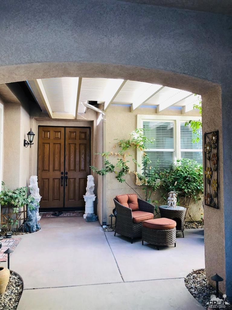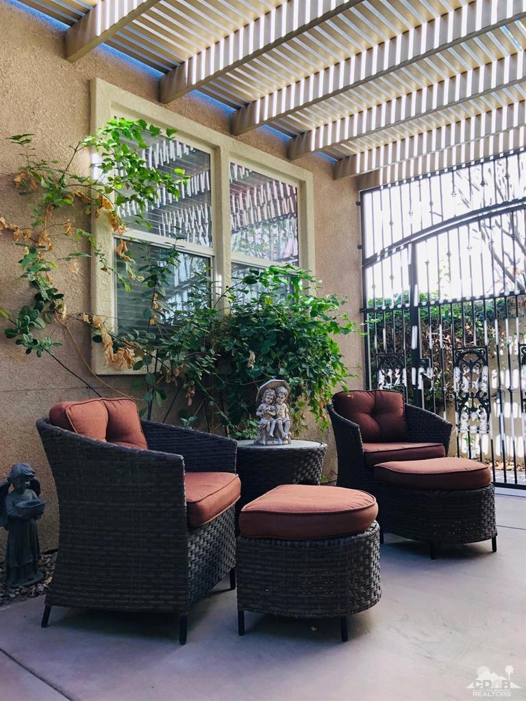 Indian Palms CC, Enter into a wonderful court yard. This turnkey-furnished with over 2000 sq. ft. 3 bedrooms and 3 baths. Master suite has a slider door leading out to the private patio for your morning coffee. A gourmet kitchen with slab granite counter tops, a center island. Home is decorated very nicely, on the golf course with lots of patio furniture for entertaining. Community has 3 pool and spas for the tenant use. Life style center with classes and nice work out room. Restaurant and Bar within the gates of the community. Public golf course so you can pay and play. Lots of great green belt areas. Close to the polo grounds and the festivals shopping, Starbucks. Home is leased Jan-April 2023