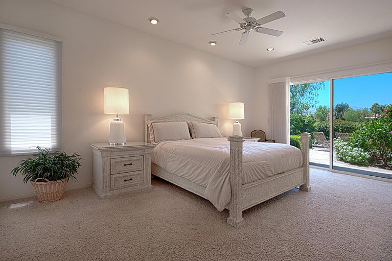 .Taking reservations for the 2026 season for $9,500 a month! Enjoy pet friendly luxury living with this rare west-facing, turnkey-furnished Bougainvillea 1 home, located on the 16th hole of the Grove course at Indian Ridge Country Club. This spacious 2,430-square-foot home offers a popular great room floor plan with an open kitchen, featuring stunning views of the snow-capped mountains and golf course. The large patio is perfect for outdoor relaxation, complete with two retractable awnings.The home includes 3 bedrooms and 3.5 baths, ensuring plenty of space for comfort and privacy. The master bedroom is conveniently located on the fairway side of the property, offering serene views to wake up to. The gourmet kitchen and separate wet bar are ideal for entertaining. Modern amenities include a 55-inch TV in the great room and 45-inch TVs in each bedroom.The master suite features a king bed, while the guest bedrooms are outfitted with queen beds. One of the bedrooms also has a desk area, perfect for those who need a workspace during their stay.Live the elevated Indian Ridge lifestyle with optional non-golf Owner's Club membership at $880/mo, offering:Arnold Palmer-designed practice facility12 lighted pickleball courts with monthly events and interclub play6 grass Bocce Ball courts + Friday social events with beverage service12 lighted tennis courts, including stadium and clay surfaceFull-service fitness center and spa, with 45+ complimentary group classes weekly--Pilates, Yoga, Spin, Sculpt & moreClubhouse dining and a vibrant year-round social calendarThis is one of the finest seasonal lease offerings in Indian Ridge. Whether you're seeking tranquility or community, this home delivers the best of both worlds.Call today for availability and experience the luxury lifestyle only Indian Ridge can offer.Additionally, the owner provides a golf cart for street use within the country club, available with a release of liability. Experience the Indian Ridge lifestyle with this exceptional seasonal rental.