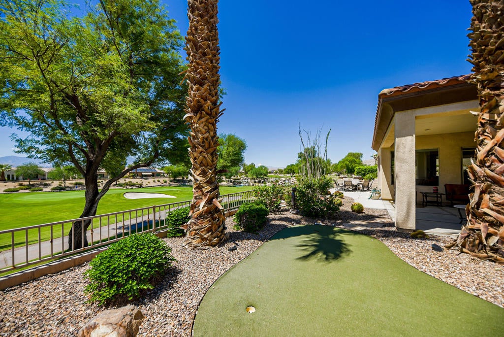 You are going to want everything this extraordinary Gathering floor plan has to offer! This home features West facing mountain views on the Golf course. This spacious home features 3 bedrooms, 3 baths, a den, two covered patios and an extended 2 car garage! Did we mention there is tile throughout the home. The kitchen has granite countertops, high quality cabinetry, a nearby formal dining area and additional sitting area at the kitchen island. The master suite has back patio access, a large walk-in closet, and a separate tub and step-in shower. Sun City Shadow Hills has 24 hour gate guarded security, two 18 hole golf courses, two clubhouses with swimming pools, fitness centers, and so much more! Furnished and ideal location! Summer rate available. Leased Jan-March 2026. Leased Jan-March 2027.