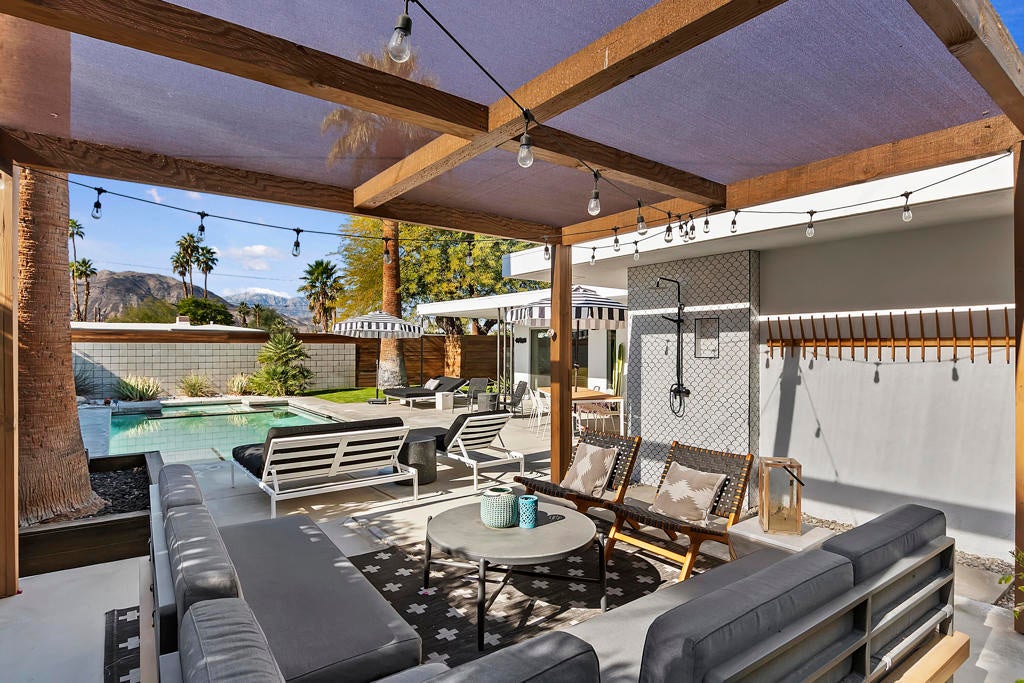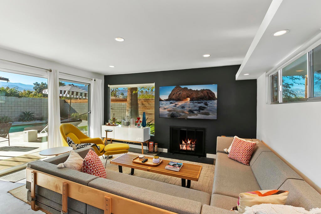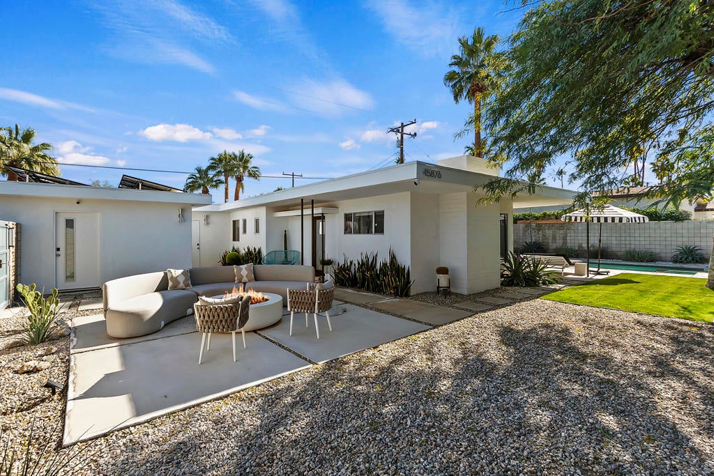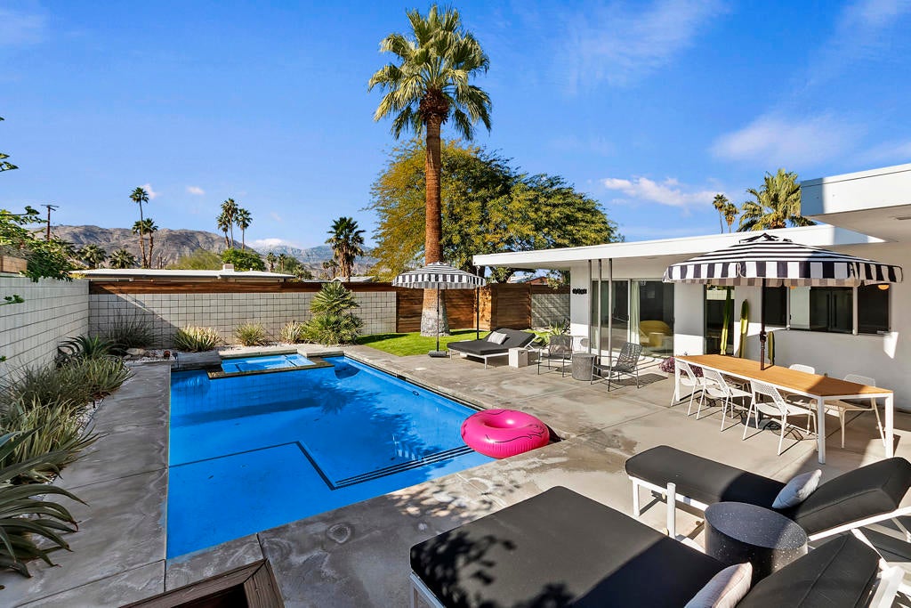 One of a kind mid century modern nestled in South Palm Desert! The front courtyard greets you with a lovely firepit for the afternoon sunsets. Immediately to the left you will find a cozy casita with it's own bath. As you enter the main house it features a modern decorators touch. Immaculate and fully stocked for a perfect vacation. The stunning South facing backyard boast an oversized pool/spa, plenty of stylish outdoor furniture, BBQ and terrace. Bring your sunglasses and enjoy!