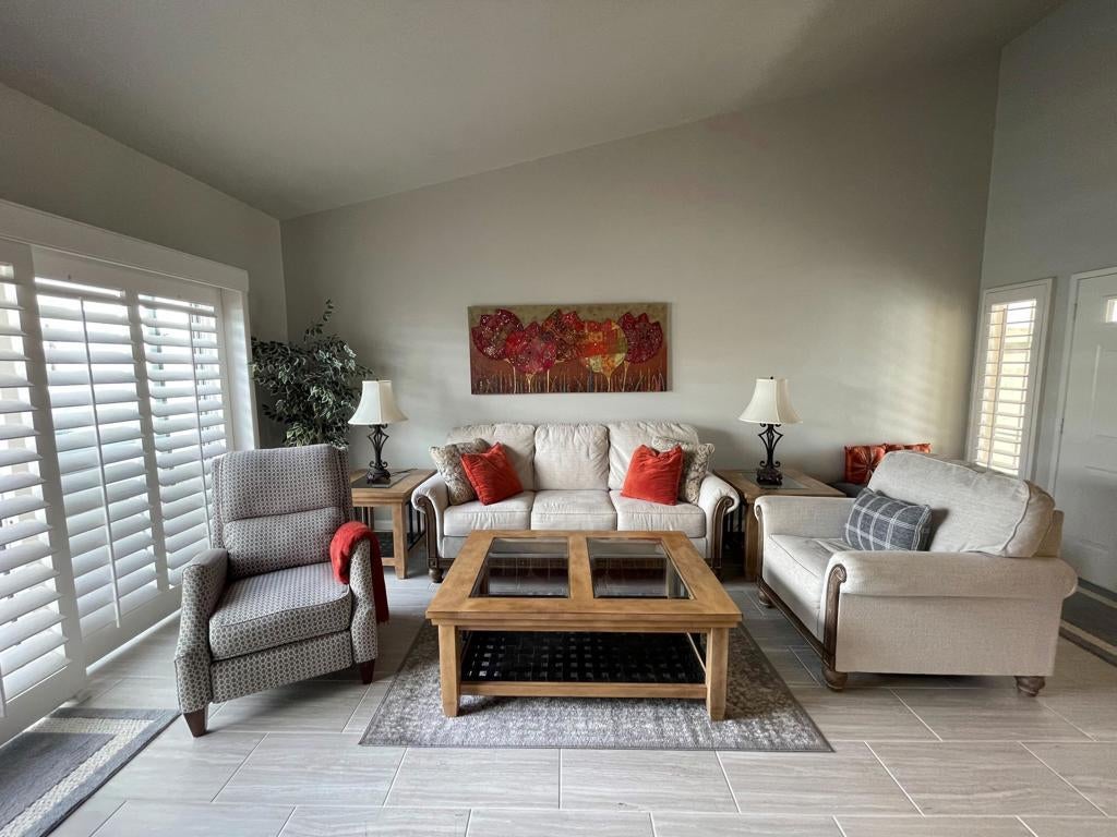 This is the off season rate. Available May 2025 to January 2026. Fabulous seasonal rental opportunity! Spectacular single level Villa overlooking beautiful pool/spa, and greenbelt! No one above or below your Villa! Great patio with BBQ. Kitchen upgrades include newer stainless appliances, cabinetry and quartz counters. Master bath upgraded with newer cabinetry, quartz counters and custom shower. Guest bath newer cabinetry. All tile floors in the main living area. High ceilings, custom interior paint! Updated furnishings! Fireplace! Media center! Plantation shutters! Large master suite with double mirrored closets! Opulent master bath with double sink vanity, walls of mirrors and a custom tile walk in shower! Guest suite and guest bath separated from the master suite for privacy! Well stocked kitchen open to the dining and great room! Utility room! Large garage with storage cabinets! Enjoy the Desert Falls lifestyle in this perfect setting! Available June 1st. Leased Jan-April 2024. Lower rates in the off season.