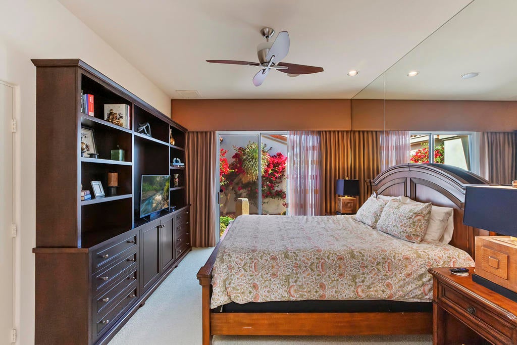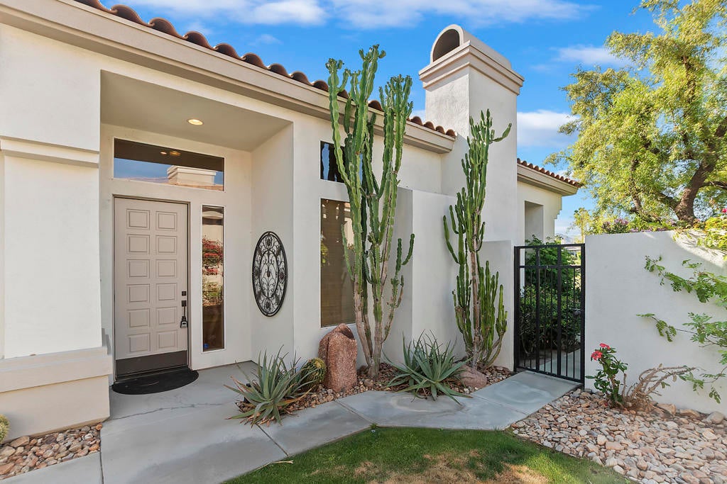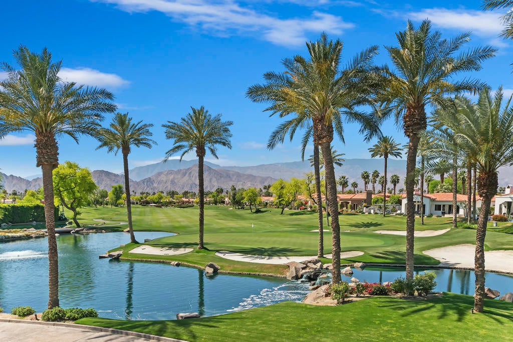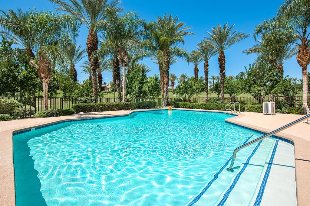 Available for the 2027 season. Spring and summer months are avail able at a lower rate.Experience the ultimate desert lifestyle at this beautifully upgraded, south-facing property in the prestigious Indian Ridge Country Club. This highly sought-after lease features a prime location just steps away from the community pool and spa, situated on a quiet interior street with exceptional curb appeal. The home boasts elegant decorator touches throughout, including newer cabinets in the bathrooms, travertine flooring, custom cabinetry, luxurious window coverings with remote controls, and a serene fountain in the atrium. The desert landscaping and electronic sun shades in the great room add to the comfort and charm of this property. The spacious master bedroom includes a California King bed, while the guest bedroom and den are furnished with a Queen bed and a Queen sofa, respectively. Centrally located, this home is just minutes away from the vibrant El Paseo shopping and dining district.Please note: No club privileges are available with this lease. Don't miss out on this exceptional opportunity to enjoy the best of Indian Ridge Country Club living!