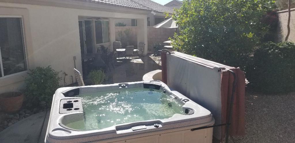 Sun City Del Webb St Croix model . One of the newer homes in Sun City , one of the last phases to be built , located near the rear clubhouse with gym & pool , choice location with a private backyard without a home right behind you . Features include ; pool table , piano , above ground spa , front and rear patios , barbeque island , granite counters , black and stainless appliances , large master with walk in closet and bath , three tv's , solar , oversize 2 car garage with additional space for golf cart , exercise machine , breakfast bar , office / den . washer & dryer , fully furnished . inclds cable / wifi / electric / gas / gardener / water / hoa dues . 24 hour gate guarded 55 and over community offers 2 golf courses / pickleball / pools / gym / tennis / clubhouses / spas / driving range / restaurants .