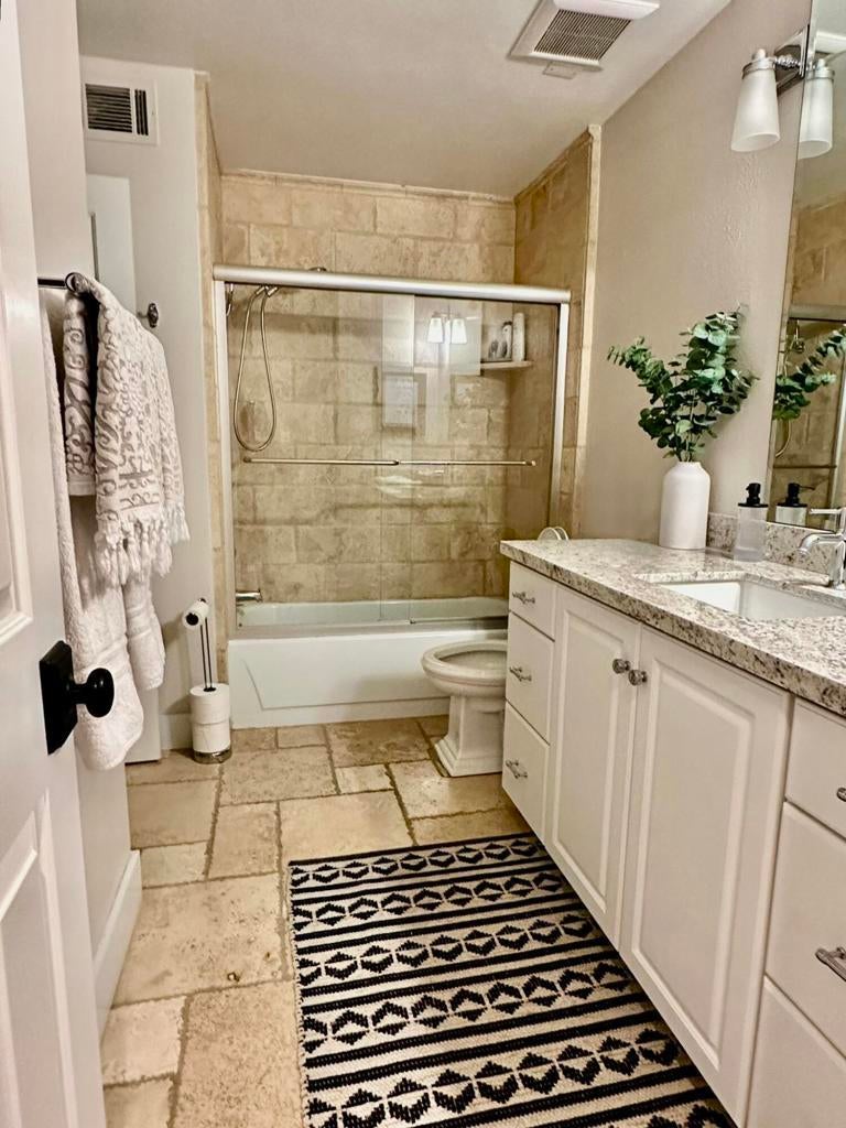 Experience the elegance of this beautifully remodeled 300 Max Plan, featuring 2 bedrooms PLUS den that owner has added a bed to, and 2 baths. With fine custom finishes from top to bottom, this spacious condo exudes sophistication. The tumbled Travertine flooring flows seamlessly throughout, enhancing the home's luxurious feel.The stunning kitchen boasts a generous counter bar, perfect for entertaining. Tastefully appointed furnishings complement the stylish design, while the elevated location offers breathtaking views of the golf course. Don't miss your chance to call this exceptional property home--please call for availability!