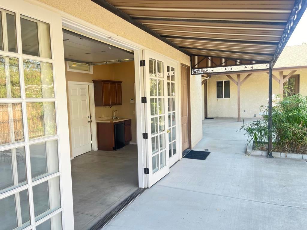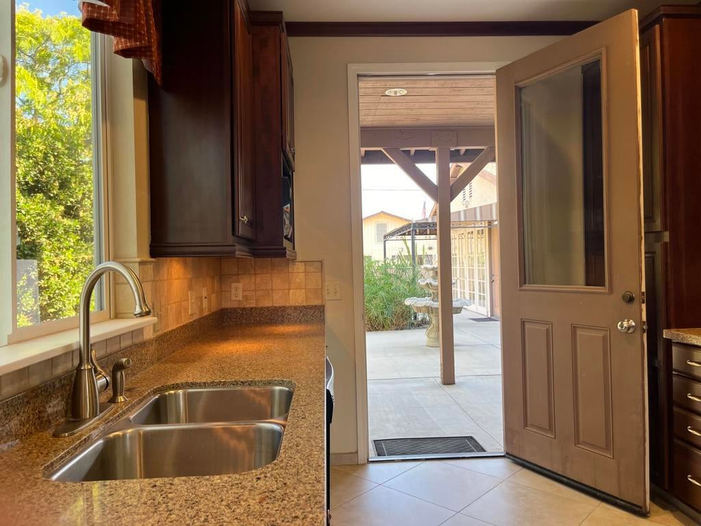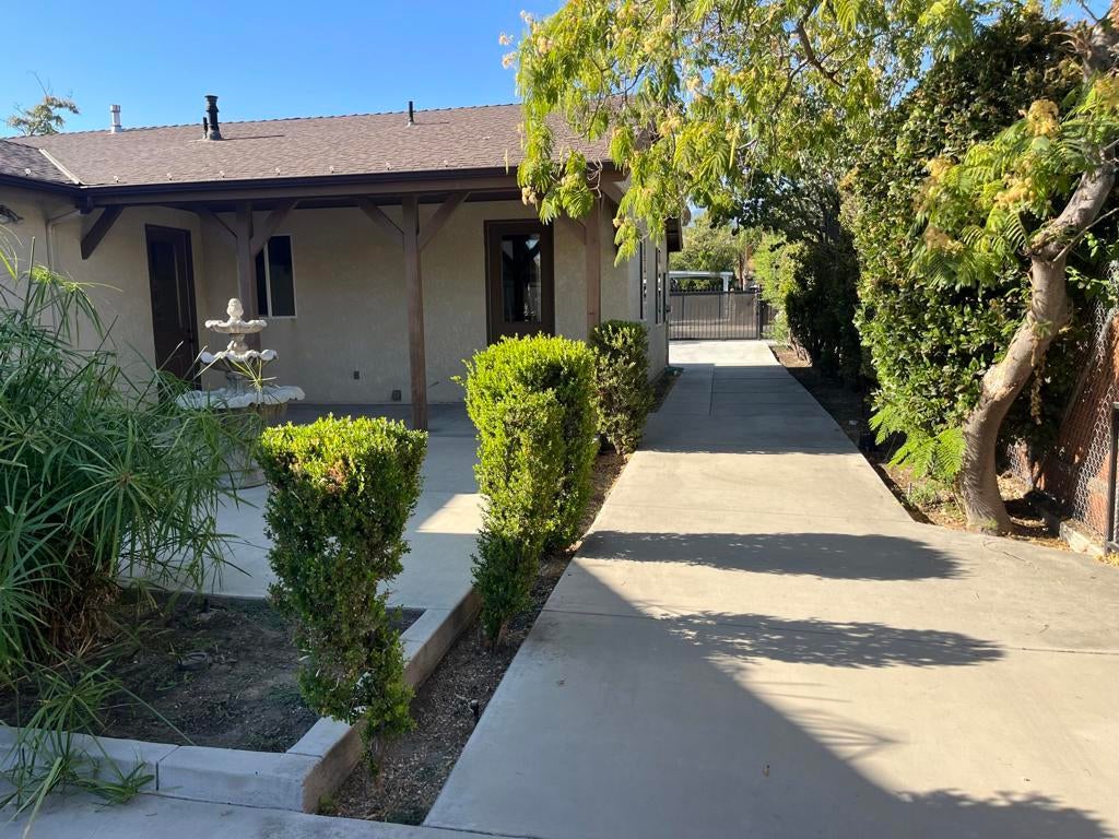 Beautiful 3 bedroom, 3 1/2 bath, ranch style home built in 2010. The house sits on a large private lot with an attached 2 1/2 car garage with additional bedroom, small kitchen area, and bathroom inside. This delightful home includes 9 foot entry doors with tall interior ceilings and large windows throughout the entire home. Each spacious bedroom feels like a primary bedroom with generous closet space and lavish tiledprivate bathrooms. The primary bedroom includes a large bathroom, walk-in closet, and sliding glass doors leading out to the patio. Laundry room includes a half bath, plentiful cabinet and countertop space, utility sink, washer dryer hookups and tankless hot water heater. Kitchen and dining area has tile floor with wood cabinets, and granitecountertops. All kitchen appliances, bathrooms, showers and sinks are brand new. The backyard boasts a largecovered patio area, lined with wrought iron railings and a central decorative waterfountain. The garage is set up to be used either for car parking, or a potential ADU, mother-in law suite, office etc.. It is fully insulated, has a separate heating and air conditioner unit, beautiful windows, French doors, includes a bedroom, bathroom, sink, and mini fridge. The property is entirely enclosed with wood fencing and mature bushes. The driveway extends to the back of the house, secured by a strong wrought iron gate. The house borders a 7,800 square feet residential lot that is also for sale by same owner. Set up your showing by contacting Andrew Light at 909831492