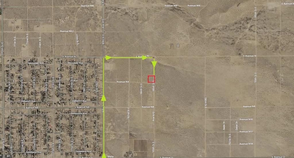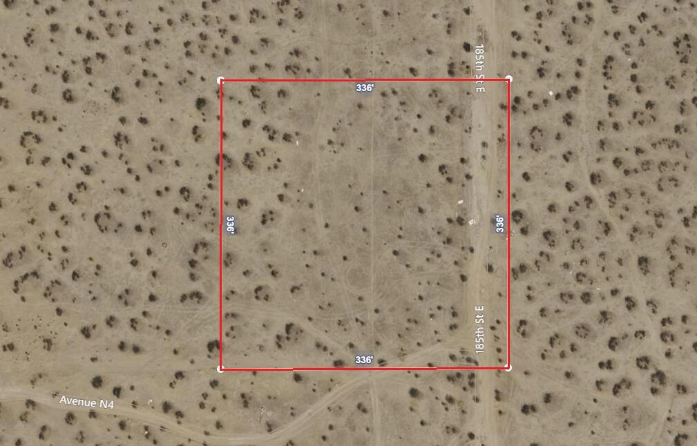 Great corner location on 185th Street East and Avenue N-4. Tract #29613 Lot 13. Be smart, Be Land SAVI ~ Buy at the lowest $/acre to protect your investment! Google Maps Geo-Coordinates are (34.62808495, -117.80098406)