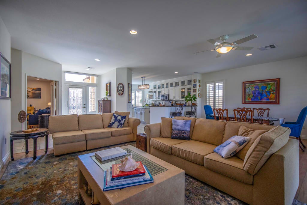 **** $5,000 a month! LAST MINUTE CHANGES - HOME NOW AVAILABLE JANUARY to APRIL 2026**** Vacation in Paradise! Turnkey furnished elegant home located on the 17th Fairway with expansive and panoramic West and Northern Mountain views. 2 BR/2 BA with oversized den/media room. Enter private enclosed courtyard perfect for your morning coffee as the sun rises in the east. Spacious Great Room with built in media center and large dining area, perfect for dinner parties. Breakfast nook in kitchen, coffee station, island, breakfast bar and with everything you need for gourmet meal preparation. Spacious Primary Suite overlooks pool and spa. Charming guest room adjacent to full bath. Interior laundry room. Private Pebble tech pool, spa and water feature. The perfect spot to raise your glass at the end of the day and view the colorful northern mountain views at sunset. Guests have access to Golf Cart . Closest to the Mountainview Clubhouse (2 on property) with on site dining , recreation and fitness. Close to the Acrisure Arena, dining, shopping and entertainment .Please see monthly rates and availability below:January - March 2025 $7,000April $6,000Booked:1/1/25 to 3/31/26Monthly rent includes 1 cleaning. May consider discount with multiple month lease.Will entertain bookings for 2025-2026 season.