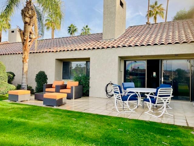 Available February & March 2026! Fabulous location for all tennis, pickleball, bocce ball, and croquet players. This Mission Hills tennis villa is situated across from the tennis & fitness center. It has a light and airy feel along with a spacious primary suite with a TOTO bidet toilet. Glass sliders lead you to front row seats on the croquet lawns. 3 Smart TV's. Spectacular mountain view from back patio with BBQ. Spacious front tiled courtyard with seating. Conveniently located washer and dryer. Turnkey Furnished. Next available Dec $3500, NOT AVAILABLE JAN 2026, AVAILABLE February & March $4200, May $2900, June, July & August $2400, Sept $2800, October $2900, Nov $3000, Dec $3500, Jan-April 2027 $4200.