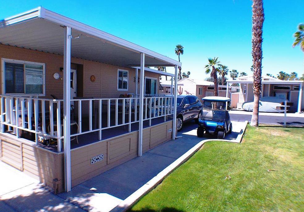 Wonderful Park Model along the East Wall with lots of area to grow. Great Parking with a covered deck to sit out and enjoy the weather. Close to the Main Clubhouse, pool/spa and the other ammenties.
