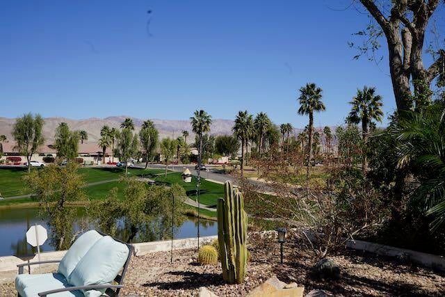 This home has one of the best views at the facility.You can see the lake and the mountains and there are no golf balls wising by your head. The home has lots of room with2,147 square feet. The back patio is very large with plenty of room for dining. The home (San Benito floor plan) has an open floor plan, with ceramic tile floors, a custom designed wall unit, and an inviting fireplace in the living room. The home has a two car garage and a golf cart garage as well.Sun City Shadow Hills has so many outdoor activities, including two golf courses, tennis courts, pickle ball, as well as multiple swimming facilities.