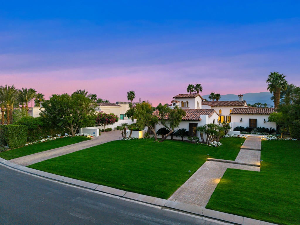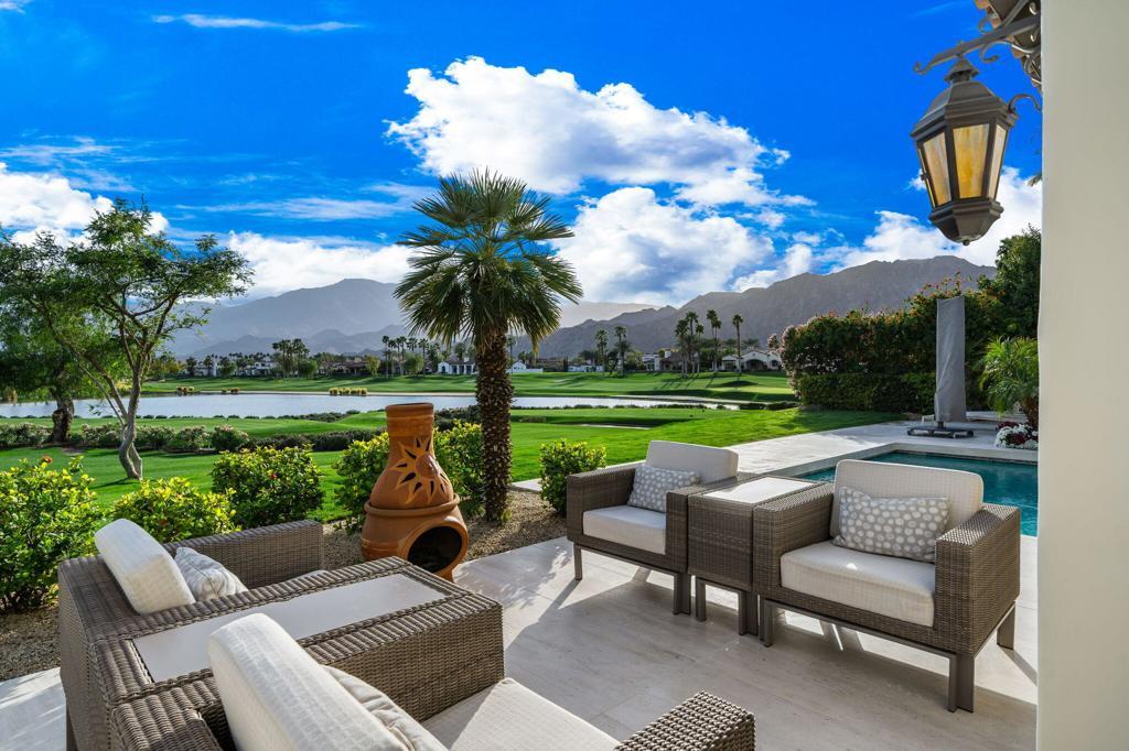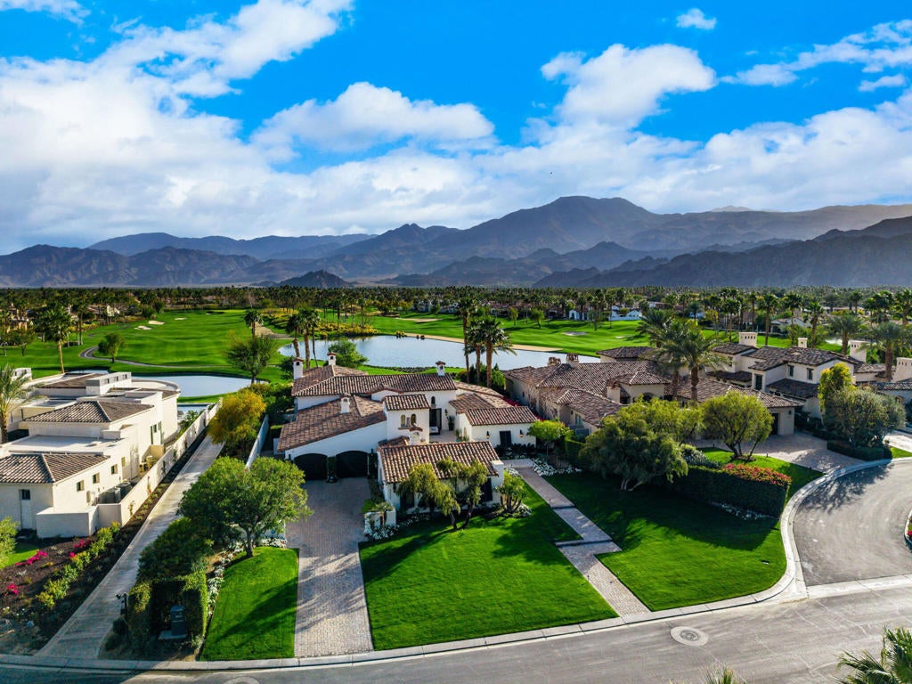 Spectacular South-Facing Views Await at This Hideaway Home! Enter the tranquil courtyard to be greeted by a beautiful, tiled fountain as you make your way into this gorgeous 4,193 sq. ft. home. Offering three bedrooms and three and a half baths, including a separate casita, this home expands on a spacious 0.45-acre lot with incredible southern Santa Rosa Mountain and lake views, as well as views of the 13th green and 14th fairway of the beautiful Pete Dye course. Whether you entertain in the formal living room, adjacent to the kitchen, dining room, and a large family room with a cozy stone fireplace, or you take the party poolside, this home invites relaxation and serenity. The gourmet kitchen is complete with a center island, stainless steel appliances, and a breakfast nook. The large primary suite features double vanities, a luxurious bath, and dual closets. Wood flooring throughout complements the travertine finishes and makes the home warm and inviting. The outdoor entertainment area has a covered patio, outdoor dining, a covered BBQ, and beautiful stone flooring. The custom pebble tech pool invites you to jump on in while the raised spa welcomes you to unwind after a long day. Offered furnished per inventory. Golf membership is available with the purchase of the home.