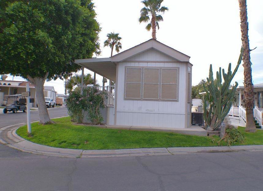 This 2007 Cavco Park Model is in excellent shape. One Owner. Corner Lot with shade trees,, deck and shed. Close to Satellite ''B'' w/pool/spa, showers, laundry facilities and mail boxes.Lovely views of the Mountains from 3 sides. Lots of windows and a separate driveway for parking. Close to front gate.Rancho Casa Blanca (RCB) features a beautifully landscaped 80-acre property with 801 individual Park Model homes/or RV sites, Two large clubhouses that function as social hubs & 4 satellite buildings with laundry facilities, mailboxes, heated pools & relaxing spas. As an owner you will enjoy FREE GOLF on your 18-hole par 3 golf course, a 9-hole putting course, 2 practice chipping/putting greens, 6 heated pools/spas, 2 tennis courts, 8 pickle ball courts, shuffleboard courts, horseshoe pitch, fitness center & over 60 Clubs & Classes. This park has a limit of 270 day occupancy (not consecutive) out of 365 calendar year.
