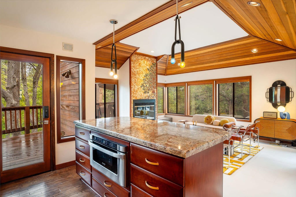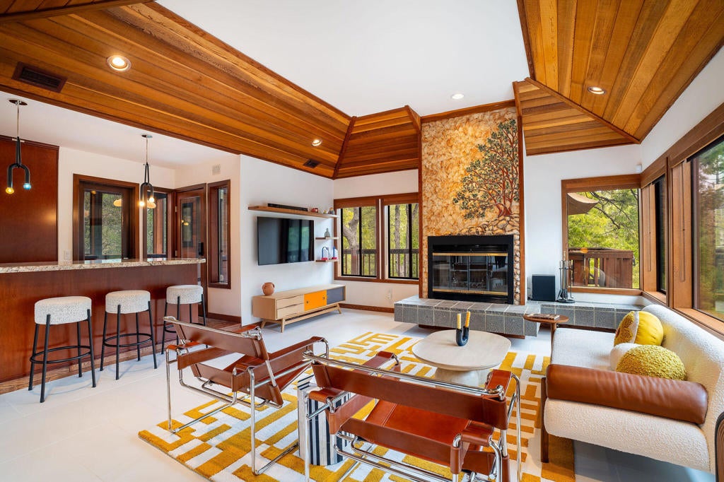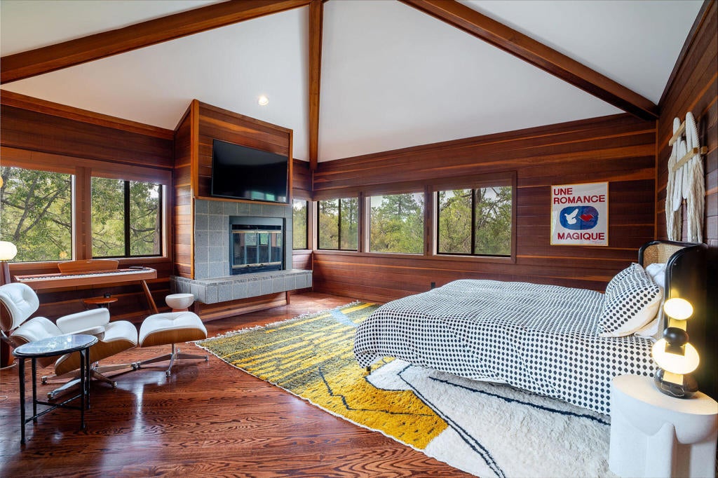Idyllville, Designed by Los Angeles Architect Alan Sakimoto, this custom 2 bed, 2.5 bath home was designed to not disturb surrounding natural bedrock or trees. Sited on 2-lots and backing to the Idyllwild Nature Center, the home provides tranquil privacy and incredible mountain and forested views. This lovely appointed redwood constructed home is filled with today's modern amenities. You will be awestruck when you see the artistic handmade tile Manzanita Tree scene fireplace with chipped granite hearth. Glass ceiling and granite floor mud room and sun room provide natural light and drama. Kitchen with stone counters, stainless KitchenAid appliances and walk-in pantry. Downstairs full ensuite Guest bedroom + Upstairs is a spacious Primary suite with forested views & features soaring ceilings, granite hearth fireplace, walk-in closet, modern bath with heated stone floors, shower, soaking tub and custom etched round window. Also a small loft space and laundry room. Stylish modern lighting throughout & incredible light filled spaces! Dine Al Fresco on the enchanting rear view deck with BBQ & listen to the sounds of nature. Close to downtown shopping, fine eateries & art galleries.