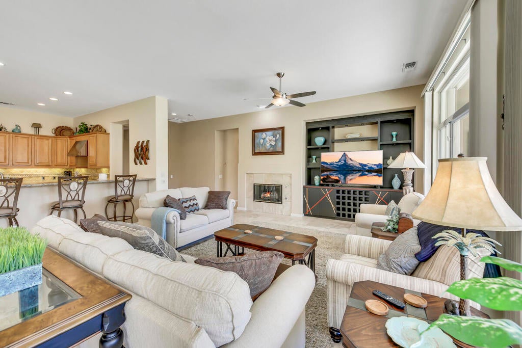 Looking for summer tenants. Nestled in the heart of the beautiful Sun City Palm Desert neighborhood, where a delightful 2-bedroom plus a den, 3-bathroom single-family detached residence stands waiting to be your charming seasonal retreat.This beautiful home, built in 2003, offers a generous 2,473 square feet of well-appointed living space harmoniously melded with a sprawling 11,761 square foot lot. One of its standout features is the expansive side and backyard waiting for you to personalize according to your aesthetics. Nestled among it all, a pretty citrus tree stands ready to provide a taste of the sweet desert life.Being part of the prized Sun City Palm Desert community, tenants will enjoy a multitude of luxurious comforts - a refreshing dip in the community pool, rejuvenating moments in the spa, workout sessions in the well-equipped gym, or an exciting game of tennis on well-maintained courts. Golf lovers can satisfy their passion with lush golf courses. Convenience is also a key advantage here. Everyday essentials are within reach, with grocery stores and a variety of delectable dining venues just a quick trip away. It presents the perfect blend of serene desert living with the comfort of suburban amenities.With its vast offerings, this delightful desert oasis property transforms the seasonal stay into an experience of luxury, convenience, and charm. Booked Nov/2026-Apr/2027