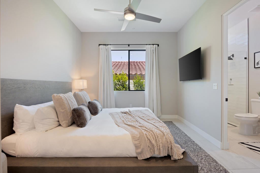 *NOTE*: This is NOT a long-term lease. It's a furnished seasonal lease, and it is unavailable until May 1st 2026. Nestled on one of the most desirable and tranquil streets in La Quinta Cove, this contemporary newer-construction single-family home offers the perfect blend of style, comfort, and convenience. With stunning views of the Santa Rosa Mountains from both the front and back yards, this beautifully designed home features an open-concept floor plan ideal for modern living.The spacious kitchen is a true entertainer's dream, complete with a large island that comfortably seats up to eight. Thoughtful upgrades include a water softening system, EV charger, Sonos sound system, and a built-in gas firepit in the private, walled front yard--perfect for stargazing under the desert sky.Each of the three well-appointed bedrooms includes its own en suite bathroom, providing comfort and privacy for both residents and guests. The backyard is a true oasis, featuring a saltwater pebble pool and spa, outdoor shower, BBQ area, and lush landscaping that offers maximum seclusion.Located just steps from the scenic walking and biking paths, this home is a rare gem in an unbeatable location.