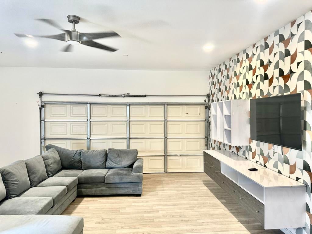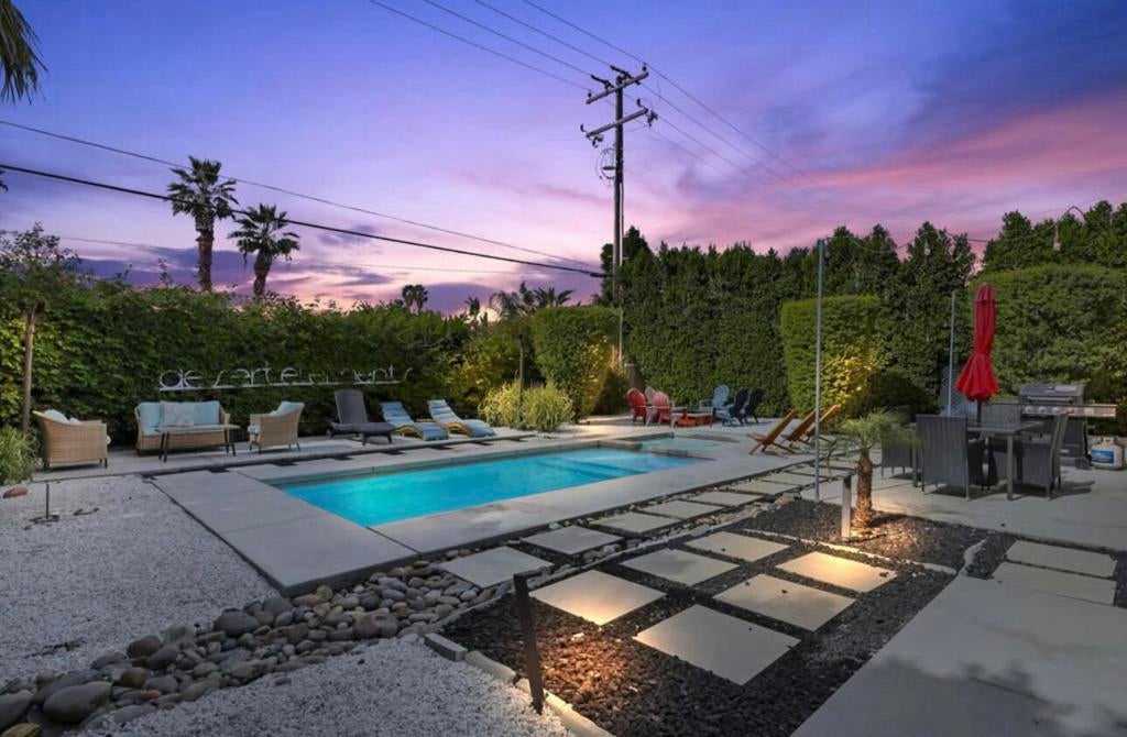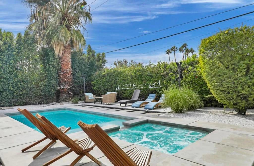 Four-bedroom, two-bathroom home is nestled in one of Cathedral City's most desirable neighborhoods. Designed with entertaining in mind, this spacious residence features an expansive backyard complete with a sparkling pool & spa.Offering generous living spaces ideal for families or hosting guests. As a bonus, the converted garage functions as a versatile fifth bedroom--fully equipped with a comfortable sofa set, air conditioning unit, large TV, and a walk-in closet, making it an ideal guest suite, media room, or private retreat.