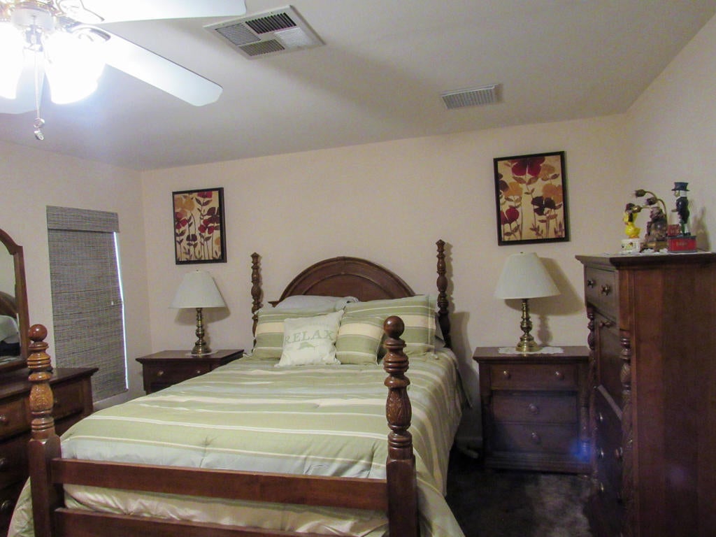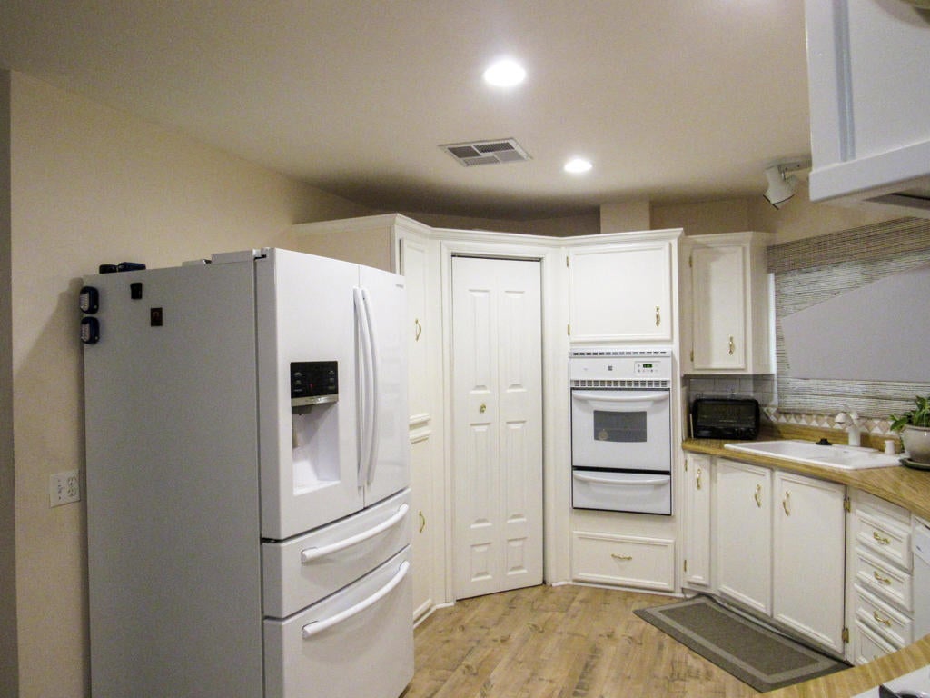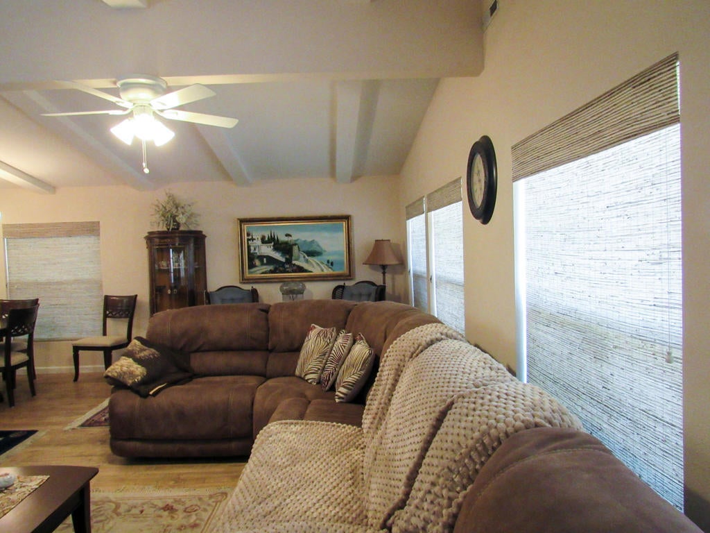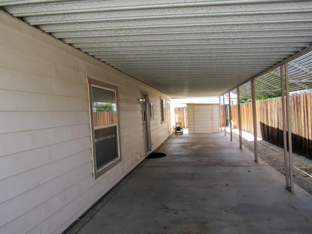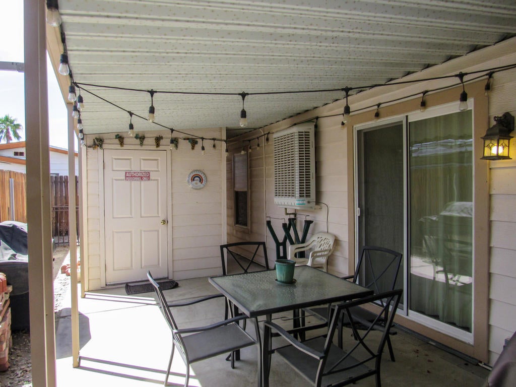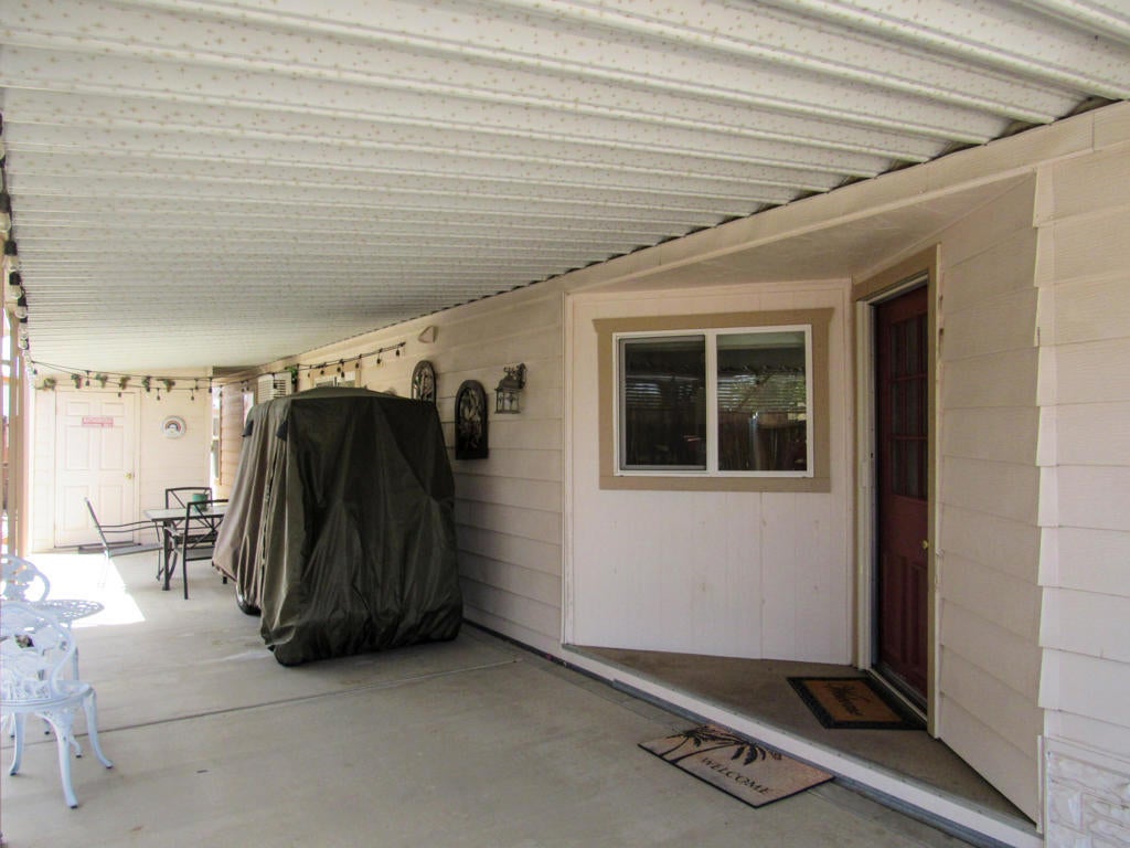 Great Buy of this 1978 Home which is still on tags for possible tax savings but also qualifies for conventional financing! This upgraded property features dry wall, dual pane windows and laminate flooring. The living area has a wall of front windows with customs blinds accented by cathedral ceilings with a dining area. The Kitchen opens to the Entertainment Area which has a sliding door leading out to the patio area ideal for outdoor relaxing and Barbecuing. The spacious Master Suite has a walk-in closet and is adjoined to the Master Bath with double sinks and a Walk-In Tile Shower. The 2nd bedroom leads to the upgraded 2nd bath. The separate utility room open to the kitchen but also to the parking area covered carport. This retreat in the desert has fans in every living and sleeping area and is ready for move-in and start enjoying life in the Desert. Close to the back gate for easy ingress and egress is another perk for this home. Enjoy free golf with ownership driving the Golf Cart that is included in the sale. Call to see this well-appointed property!