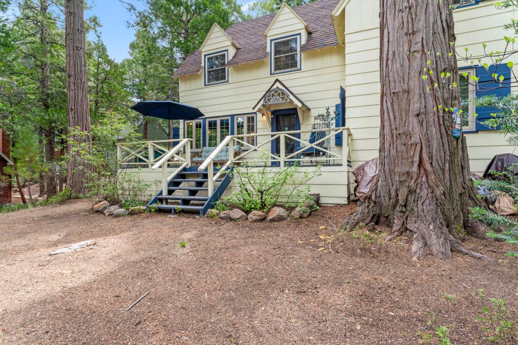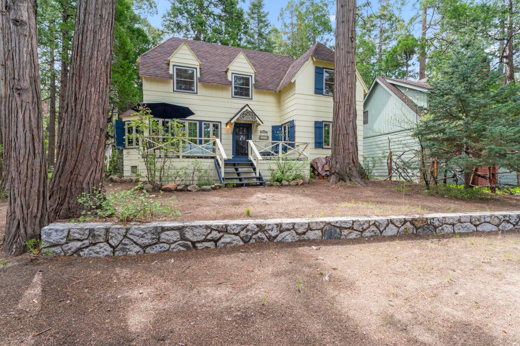 One of the Original Lake Arrowhead Charmers.Step into the timeless charm of this beautifully preserved 1935 Lake Arrowhead home, ideally situated on three rare, level street-to-street lots. With modern updates and vintage soul, this retreat is ready to enjoy year-round. The spacious living room welcomes you with a stunning granite fireplace, original wood floors, and warm mountain ambiance. Dual-paned windows throughout bring in natural light while enhancing energy efficiency. The kitchen has been thoughtfully updated--balancing modern convenience with period details that honor the home's heritage. Remodeled bathrooms offer a fresh, stylish feel. With level entry and two main-floor bedrooms, accessibility is easy and comfortable. Outside, enjoy mountain living at its finest with a large deck for entertainment, as well as a generous patio with its own outdoor fireplace, and plenty of room to relax or gather under the trees. Upgrades by the previous owner include updated electrical and plumbing systems for peace of mind. Located within Lake Rights and just two streets off the lake. Best of all, this home is sold furnished, so this turnkey home is ready for you to start enjoying Lake Arrowhead living at its best--whether as a full-time residence or a weekend getaway.