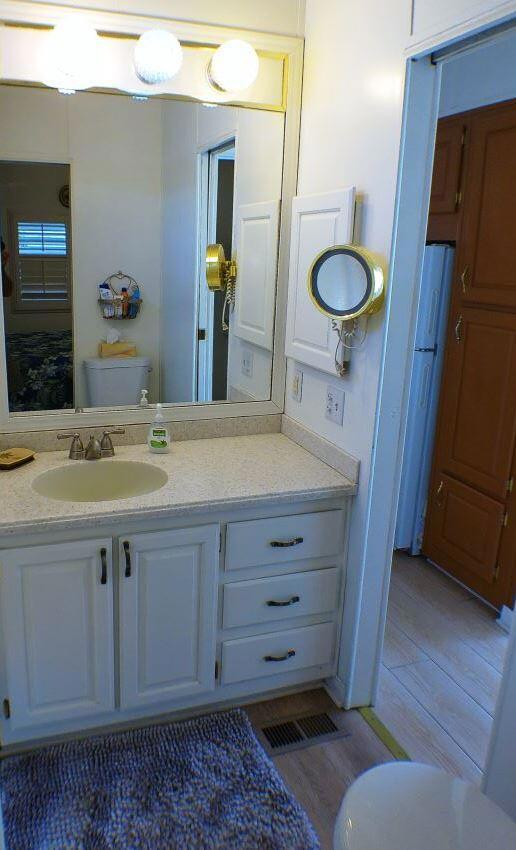 Refurbished 1992 Fleetwood Park Model. Wonderful light colored flooring, gas stove, microwave, fridge. Jack & Jill Bathroom, great storage through-out. The parking is awesome with room for a truck/or car plus Golf Cart area. Backs on the east wall. Has been a wonderful rental property for owner. Rancho Casa Blanca is a 55+ Active Lifestyle Resort Community where you own the land & is perfect for your winter hideaway. Rancho Casa Blanca (RCB) features a beautifully landscaped 80-acre property with 801 individual Park Model homes/or RV sites, Two large clubhouses that function as social hubs & 4 satellite buildings with laundry facilities, mailboxes, heated pools & relaxing spas. As an owner you will enjoy FREE GOLF on your 18-hole par 3 golf course, a 9-hole putting course, 2 practice chipping/putting greens, 6 heated pools/spas, 2 tennis courts, 8 pickle ball courts, shuffleboard courts, horseshoe pitch, fitness center & over 60 Clubs & Classes.