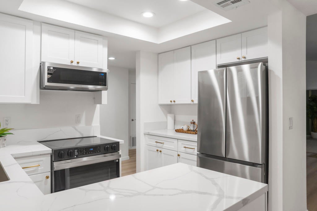 - AppliancesDishwasher, Disposal, Microwave, Refrigerator, Electric Oven, Electric Range, Freezer, Gas Water Heater, Vented Exhaust Fan