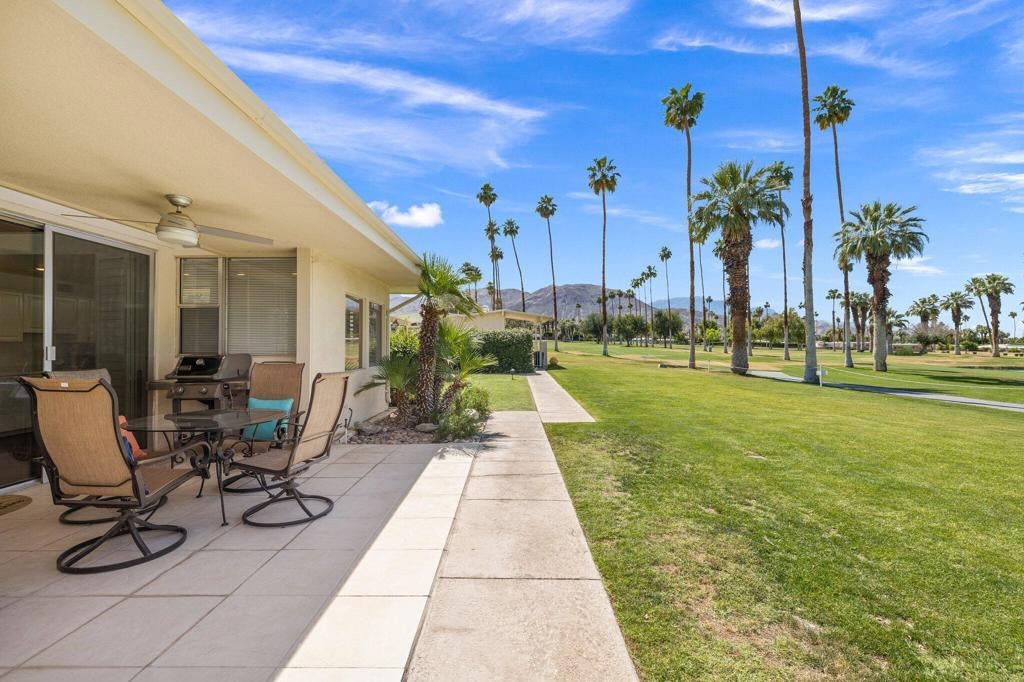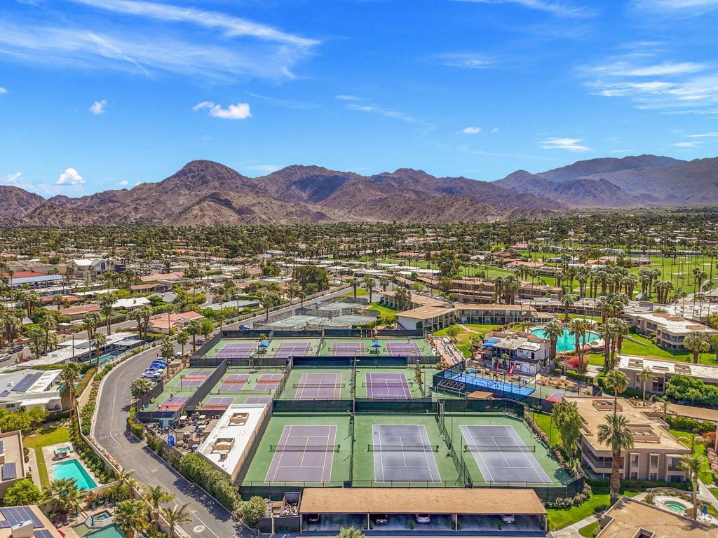 Mid-Century Modern Vibes in South Palm Desert! This true mid-century modern gem, designed by the iconic Harold J. Bissner of Robert I. Pitchford & Associates, is bursting with soul and style. With 2 bedrooms, 2 baths, and those classic clerestory windows that let the light pour in just right, this is Palm Desert living at its most vibrant. Enjoy dazzling sunsets from your private patio overlooking historic Shadow Mountain Golf Course, a tranquil pond, city lights, and the stunning mountain backdrop. There's even a natural gas BBQ ready for effortless outdoor entertaining. Tucked just off the primary suite, a serene courtyard offers a quiet spot for morning coffee or a good read. Inside, you'll find a thoughtfully updated kitchen and baths, tile floors throughout, plantation shutters, a bar for evening cocktails, and an owner's closet to keep things secure when you're away. Sold turnkey furnished, so you can step right into the vibe. Located in the boutique 16-unit Mountain Shadows community--with a sparkling pool and spa--it's just minutes to El Paseo, McCallum Theatre, College of the Desert, and endless options for hiking, biking, golf, and tennis. Cool, classic, and full of character--this one's got groove and views. Don't miss it!
