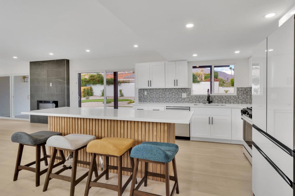 Discover this beautifully updated mid-century modern retreat where sleek design meets modern comfort. Perfect for entertaining orunwinding, this home offers seamless indoor-outdoor living with breathtaking mountain views. The stunning pool has been replastered with new plumbing,electrical, and new equipment, complemented by a newly installed Alumawood-covered patio, decorative stone, drought-tolerant landscaping, and a customputting green. Inside, the open-concept layout is flooded with natural light, featuring a chef's kitchen with quartz countertops, new stainless steel appliances,and a wood-accented dining island. Additional upgrades include new recessed lighting, new double-pane windows, and a cozy fireplace, creating a warm andinviting atmosphere. Spacious bedrooms, and chic bathrooms complete this stylish home, blending timeless mid-century charm with modern upgrades for theultimate Palm Springs retreat.