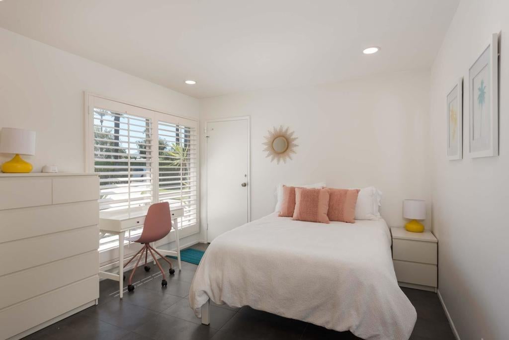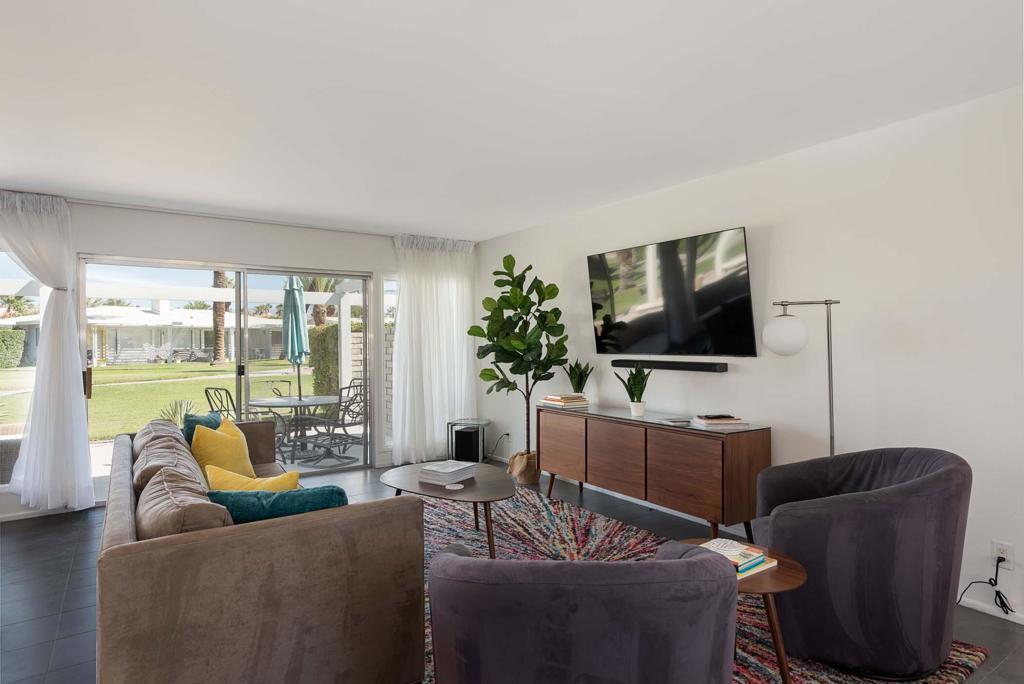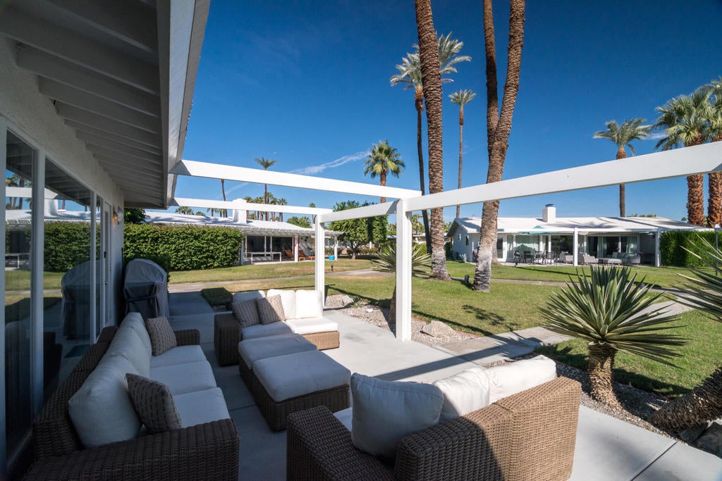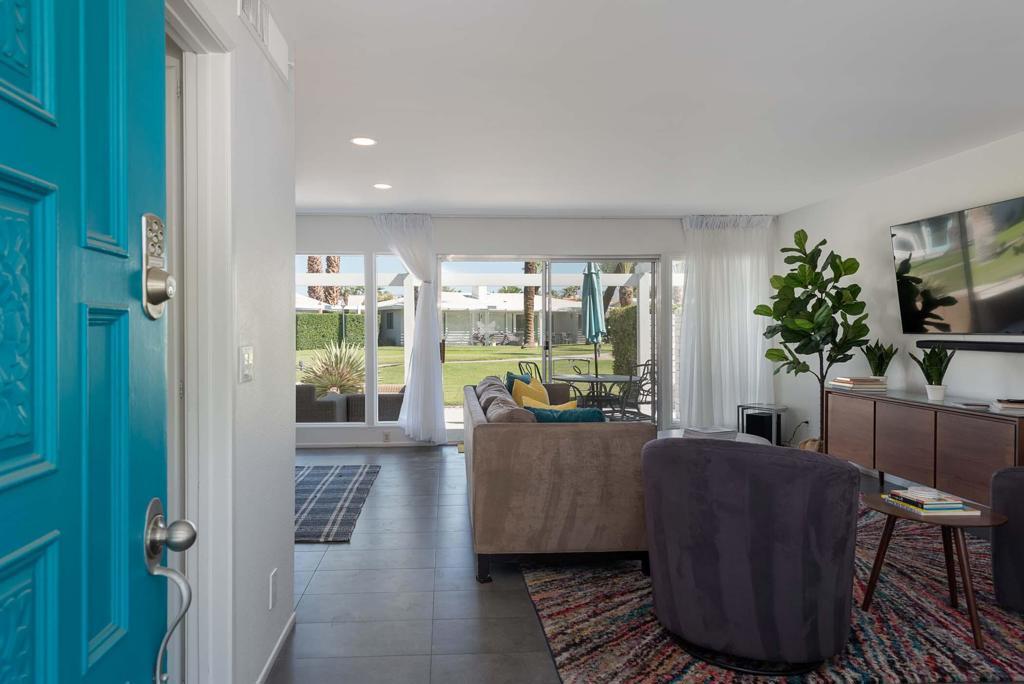 Fabulous Mid-Century home located in Tamarisk Rancho. This home is registered with the Historic Preservation of Rancho Mirage and gives the feeling of classic Palm Springs vibe! This 3 bedroom, 3 bath home is loaded with amazing views and friendly neighborhood charm and plenty of views. New tiles and see through fireplace has been added to enhance your relaxing stay. The wall of windows looks out to the beautiful greenbelt of the 16 homes that encircle the large welcoming community pool. The kitchen and baths have been updated and the front and back patio have plenty of room to entertain family and friends, all while watching the beautiful mountain sunsets. This home will not disappoint! Newly installed solar. Call now to book this one-of-a-kind rental. Limited availability.