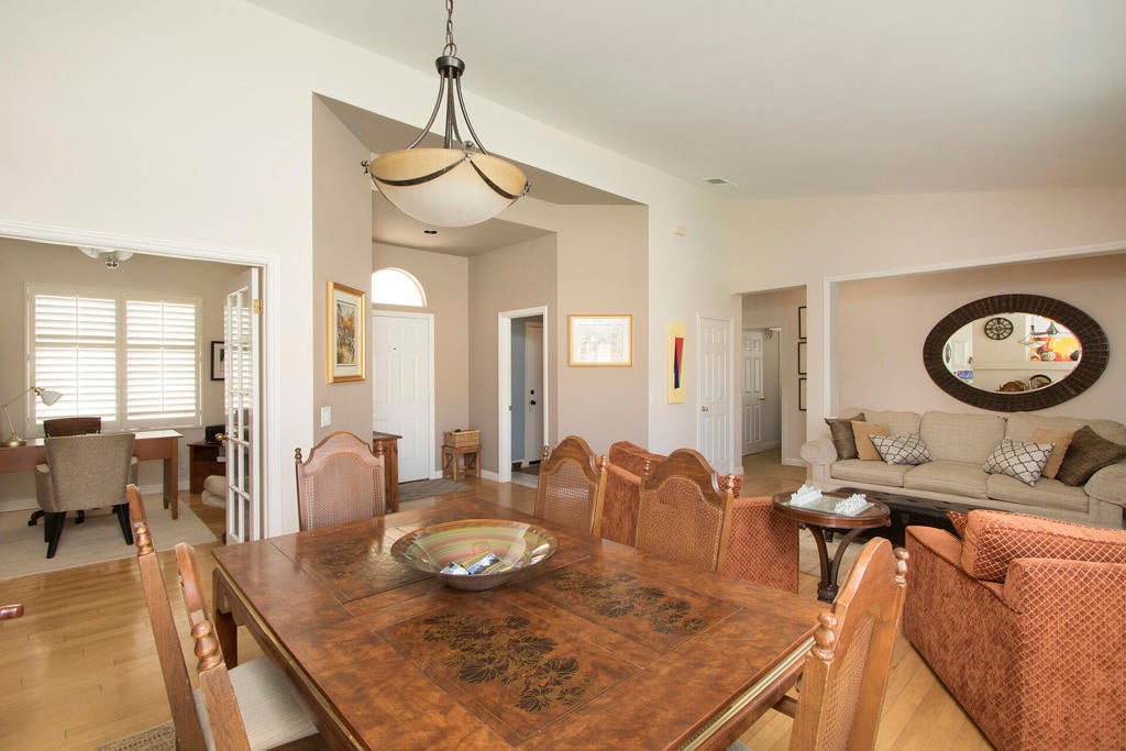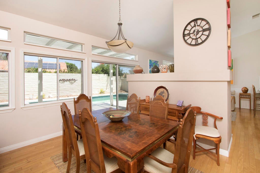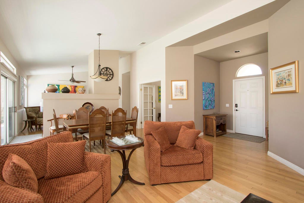 HUGE PRICE REDUCTION! Owner is ready to get this wonderful 3 bedroom plus den, 3 full bath home in the desirable community of Rio Del Sol SOLD NOW!!! Open and bright floor plan with lots of windows and high ceilings. Spacious living room with dining area overlooks the beautiful back yard with pool and spa. Kitchen with counter bar off the family room allows for a great room openness. Family room with cozy fireplace also overlooks the pool and spa making this home cheery and welcoming. Primary bedroom with direct access to the back yard and pool includes en suite bathroom with dual sinks and large walk-in closet. Second bedroom and full bath is down the hall for good separation between the two bedrooms. Third bedroom is perfect for guests on the opposite side of the house for added privacy. Den/office or fourth bedroom is off the main entry for added convenience. Indoor laundry room with direct 3 car garage access. Solar panels, Large corner lot, nice grassy side yard.Rio Del Sol is a vibrant, guard-gated community offering residents a community pool and spa with beautiful views of the mountains, tennis courts and lakes.