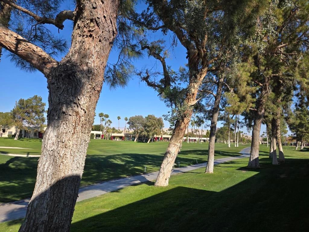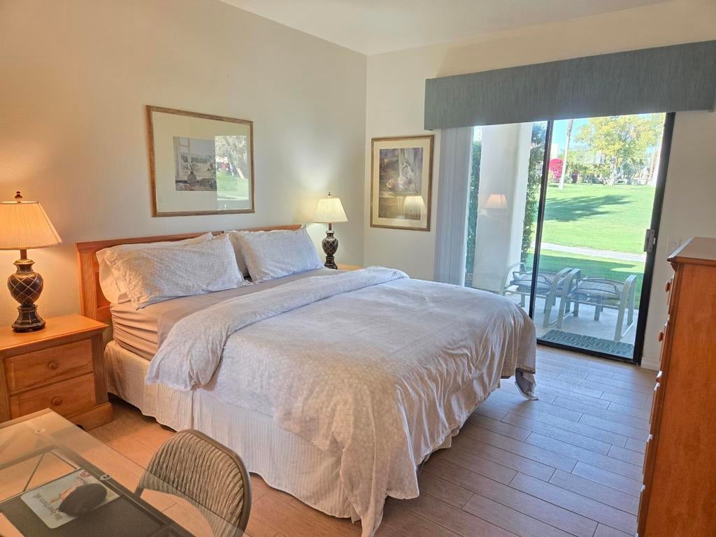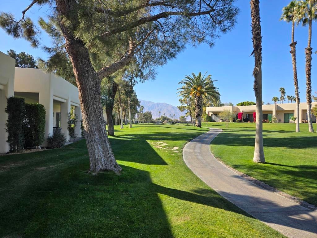 REDUCED! Welcome to your updated new home in the heart of Desert Princess located on the Logos 5 green! Seller is in process of extending land lease to 2069, a cost of $20,000. This beautiful remodeled 2 ensuite condo is designed for those who crave luxury and comfort. Imagine sipping your morning coffee while soaking in the breathtaking views from both the front and back patios. With all tile flooring and a remodeled kitchen, built in wine fridge, you'll feel right at home as you whip up gourmet meals in style. The striking remodeled bathrooms and nice furnishings add the perfect touch of elegance to your living space. HVAC is 3 years old and is a 3.5 ton. Hot water tank is 3 months old. Plus, being located just across from the Arroyo's homes, you'll have easy access to the sparkling pool and scenic walking path, making it perfect for an active and serene lifestyle. And let's not forget the convenience of a single car detached garage! Don't miss out on this incredible opportunity to live in a community that embraces comfort and luxury!Land lease thru 2069, Monthly Ground Rent is $186.54.The Desert Princess has an affordable 27-hole PGA Championship golf course, no Tee-time lotteries, no initiation fees, rated among the best in the valley by GOLF DIGEST. Bocce Ball, tennis and pickleball, we have it all! This quiet community is away from the noise yet minutes from everything that is in Palm Springs; restaurants, shopping, casinos, an international airport, the Tramway, Art Museum, Theaters, and the Street Fair.