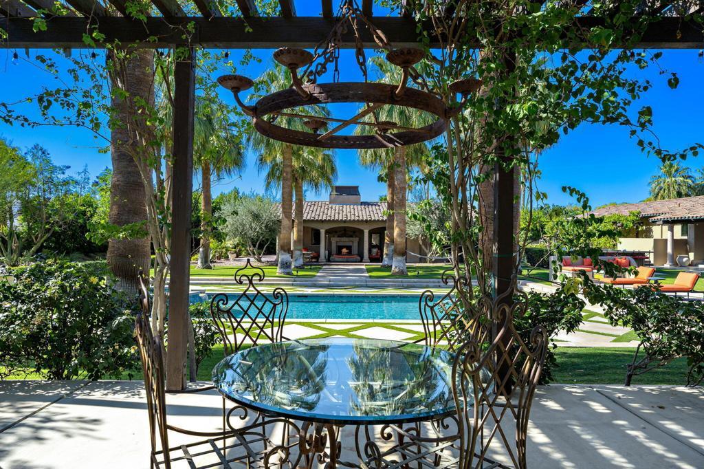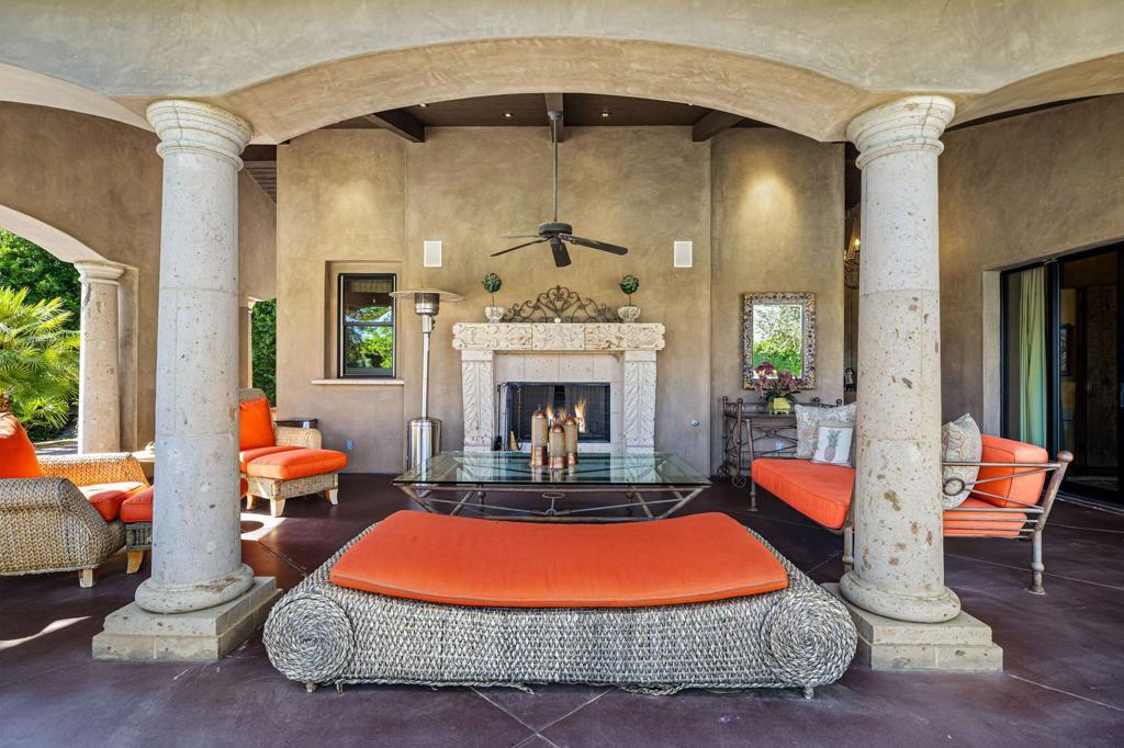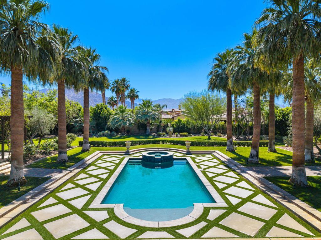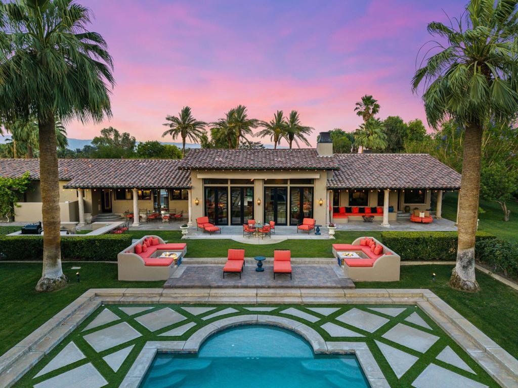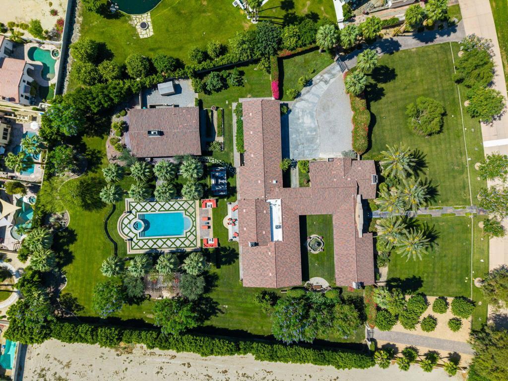 $400K PRICE Improvement! Imagine entering through a majestic, gated entry lined with towering Palm Trees to an extraordinary Estate that exudes unparalled luxury and exquisite style. This Elegant Spanish residence is known as Casa Del Sueno or Dream House, a tranquil luxury Estate located in the exclusive gated enclave of La Quinta Polo Estates. Meticulously kept, the property blends Old World Charm with modern elegance and offers breathtaking views of the Santa Rosa Mountains, expansive indoor/outdoor entertaining spaces and resort-style amenities including a sparkling pool & spa surrounded by swaying, majestic palm trees, two custom stone firepits with built in cushioned lounge seating adjacent to a two bedroom guesthouse & grand outdoor living room with custom stone fireplace to enjoy evenings under the stars. Casa Del Sueno is set on over 2 acres with sprawling lawns, stone walkways, lush, verdant landscaping, mature shade trees, an orchard, vibrant bougainvillea & tropical plants, grape vines over pergolas creating an inviting & serene oasis. This home is designed to offer ample space with multiple outdoor terraces, 3 guesthouses, cozy media room w/fireplace, bar & wine cellar. An expansive covered outdoor loggia and enchanting fountain as the centerpiece connects the guesthouse & media room to the main house, perfect for evenings relaxing in front of a crackling fire while playing billiards or lawn games surrounded by romantic hanging lights softly illuminating the area. This exquisite Estate offers 5 bedrooms w/ensuite baths, 7 bathrooms, chef's luxury kitchen perfect for effortless entertaining, butler's pantry, an elegant living room w/massive stone fireplace & floor to ceiling walls of glass and French doors that opens to a grand terrace & outdoor dining room/living area w/seating for 30+, outdoor kitchen, BBQ, & Poolside Bar. The master suite is a true retreat with 2 bathrooms, dressing room, living room and provides incredible views of the lush grounds & shimmering pool with French doors to a private covered terrace. This exceptional property includes superb architectural elements & sumptuous furnishings throughout. Adjacent to Eldorado Polo Club, the Hideaway & Madison, this hidden gem offers a Magnificent setting with spectacular views that provide a stunning backdrop to unwind & enjoy the beauty of the desert. This is a priceless opportunity to own a special piece of the Polo Estates, the finest real estate the Desert has to offer.