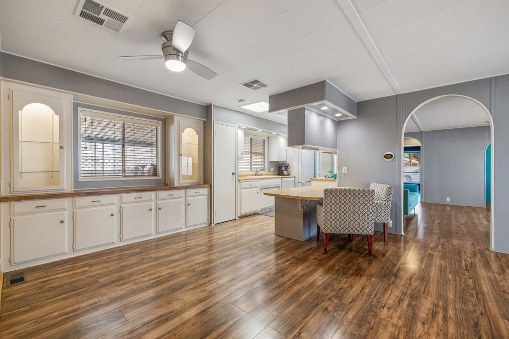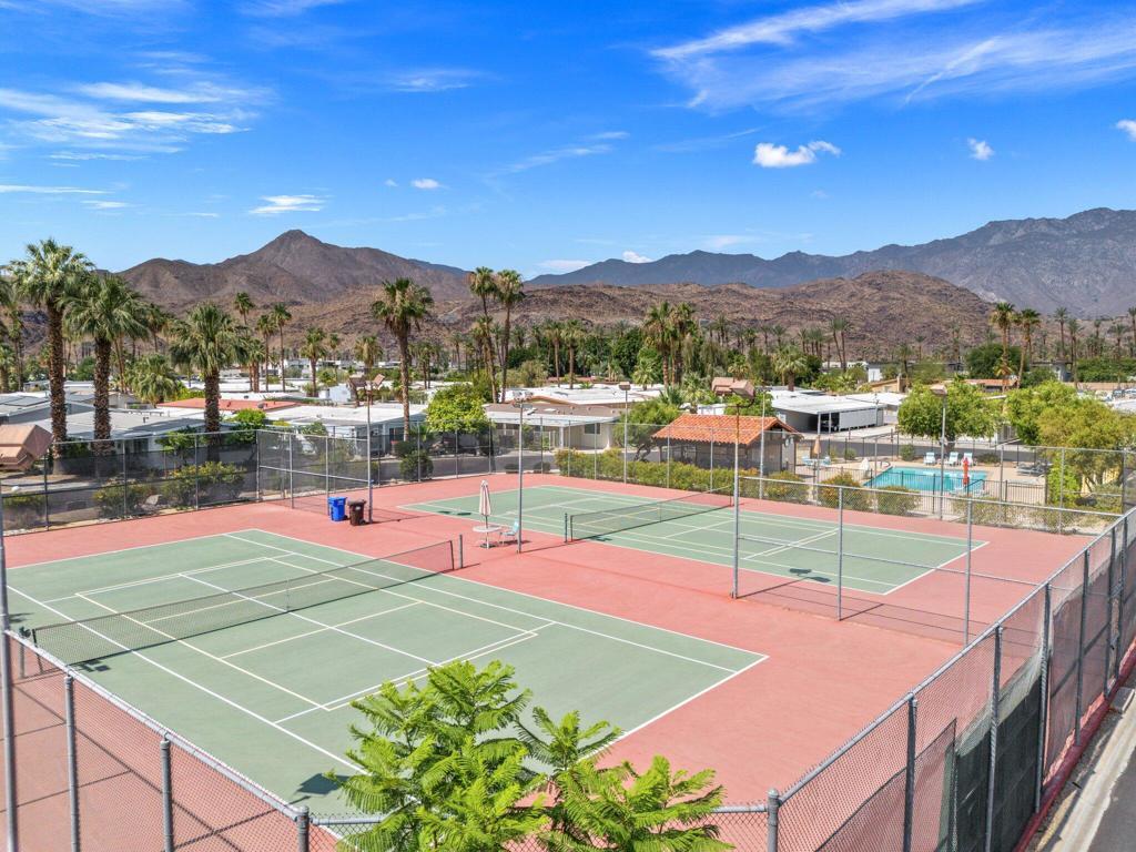 MOVE IN READY, Palm Springs, You Own the Land. Central to everything, walk to Traders Joes, Restaurants, Shopping and easy access to Airport. Downtown is mere minutes on E. Palm Canyon Dr. You will love this Quintessential Palm Springs Home. Tasteful colored walls, LVP flooring, tile in bath. Covered Patio with tile and desert landscape, fenced for pets, great area for all season entertaining. Bedrooms are on either side, for privacy, extra large Laundry area with sink and storage. Arched doorways, skylights, you are going to be impressed with this home.55+ Active Community with HOA that covers Clubhouse, gym, two Pool/Spa, Tennis courts, RV parking, trash and water included. This one will say to you and friends, ''I live and love Palm Springs.''