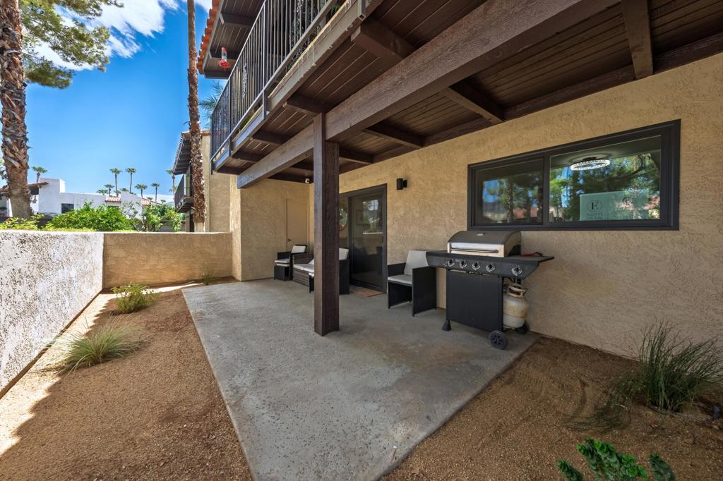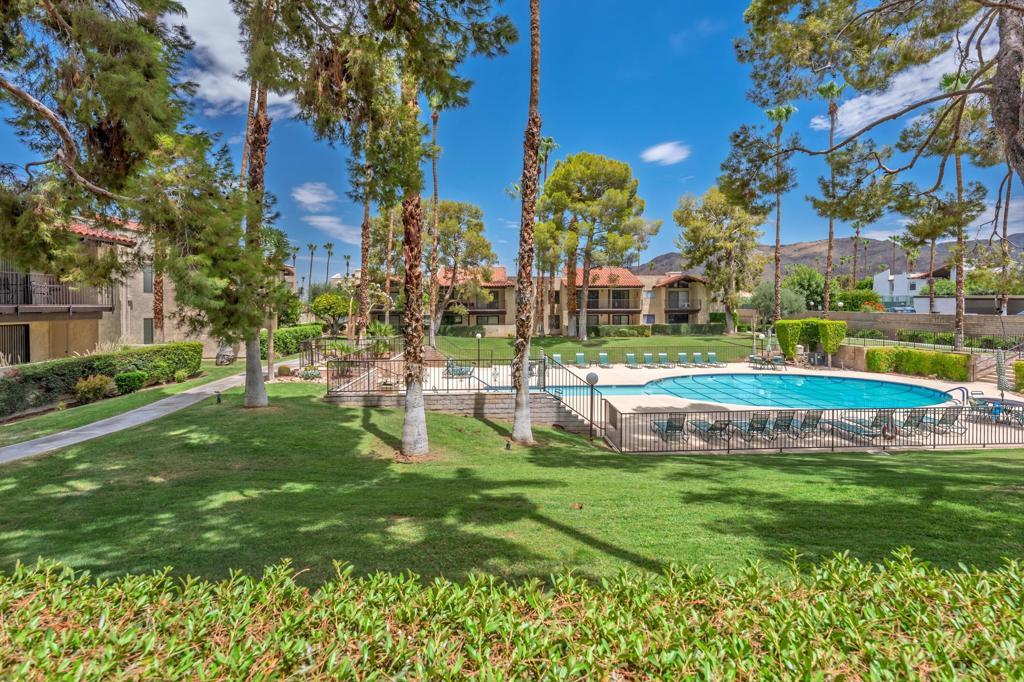 Tucked away in the desirable south end of Palm Springs, this beautifully updated ground-level condo offers privacy, comfort, and resort-style amenities. Featuring dual primary suites--each with its own private bath--this layout is ideal for guests or shared living. Enjoy numerous upgrades including a new A/C unit, new hot water heater, all-new dual-pane windows and patio slider, ceiling fans, fresh interior paint, and enhanced electrical panel. The kitchen and bathrooms have been tastefully remodeled with modern finishes, offering both functionality and style. Step outside to your private back patio with low-maintenance desert landscaping with an elevated sweeping view of the open greenbelt, stunning mountains, and the nearby community pool. The HOA provides a wealth of amenities including: 6 tennis courts, 3 pools & 4 spas, fitness center, clubhouse, library, and community gathering space. The HOA fees also include exterior maintenance, common area landscaping, water, trash, gas, insurance. Located just minutes from downtown Palm Springs, popular hiking trails, world-class dining, shopping, entertainment, and golf.